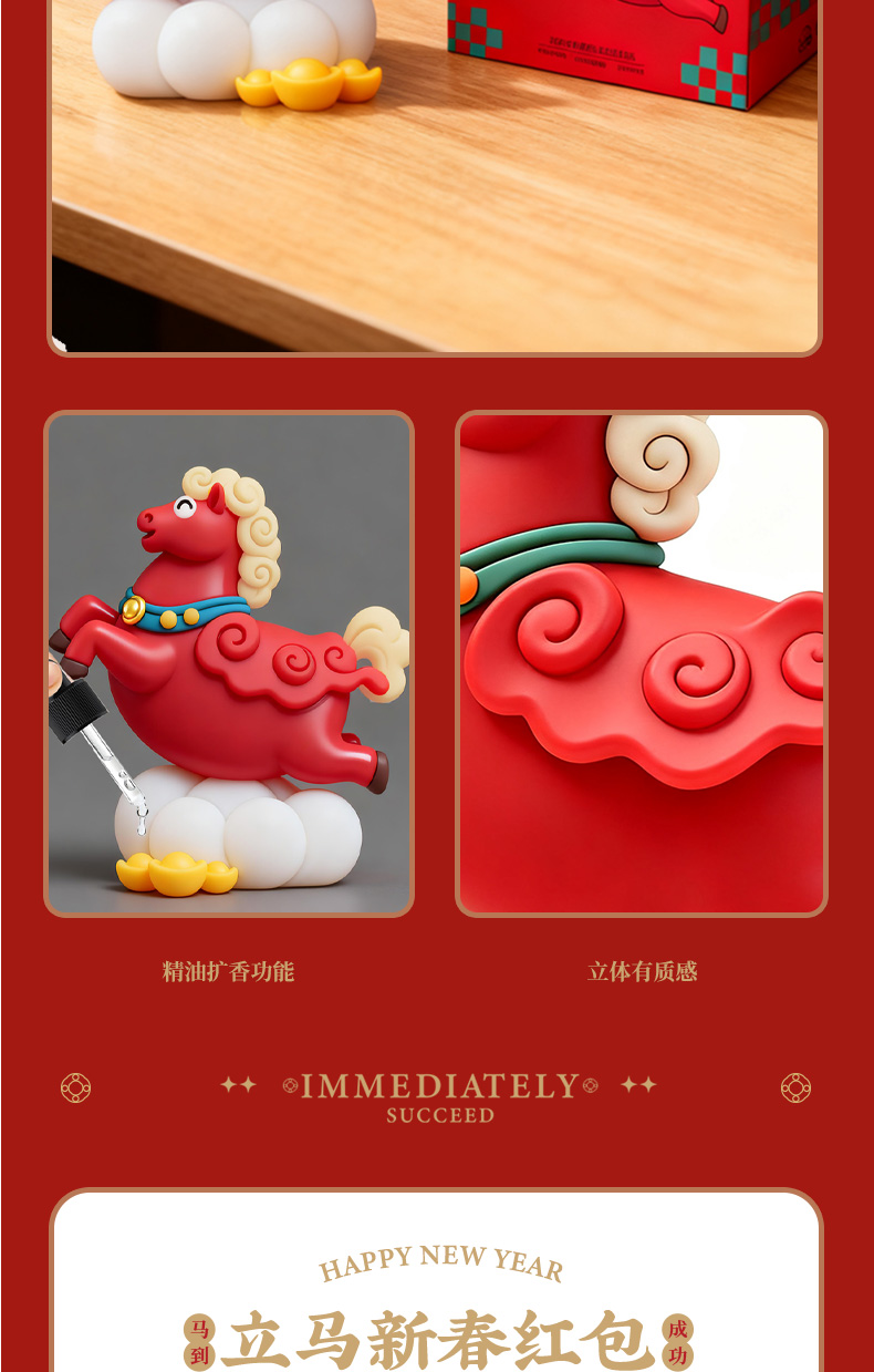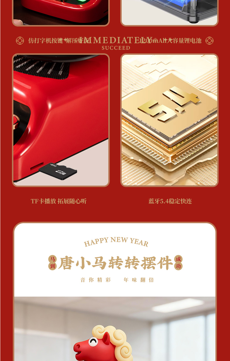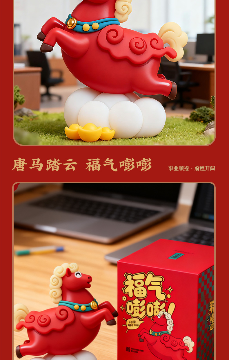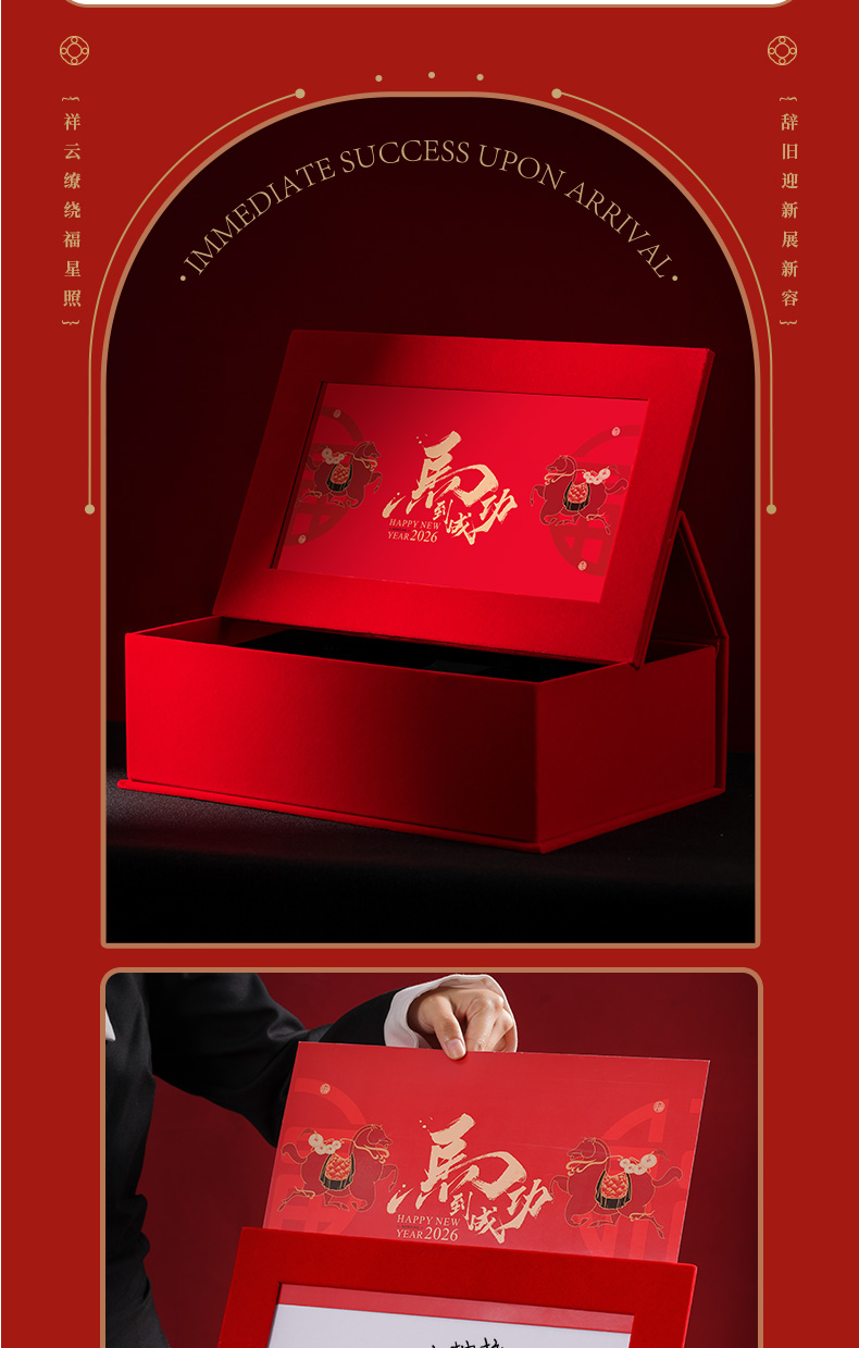 1、好运复古蓝牙音箱:蓝牙、氛围灯、趣味按键 2、马到成功桌面摆件 3、新年红包*6:开启新年好运程 4、绒面礼盒:日历功能、收纳功能 用完不闲置, 注:礼盒可专版定制画面
