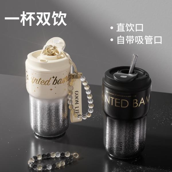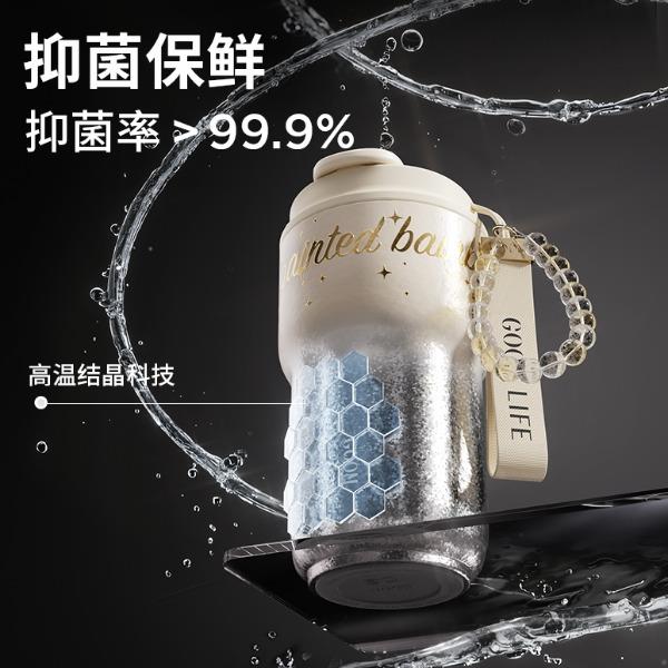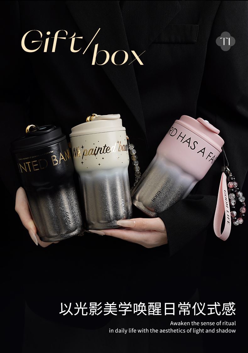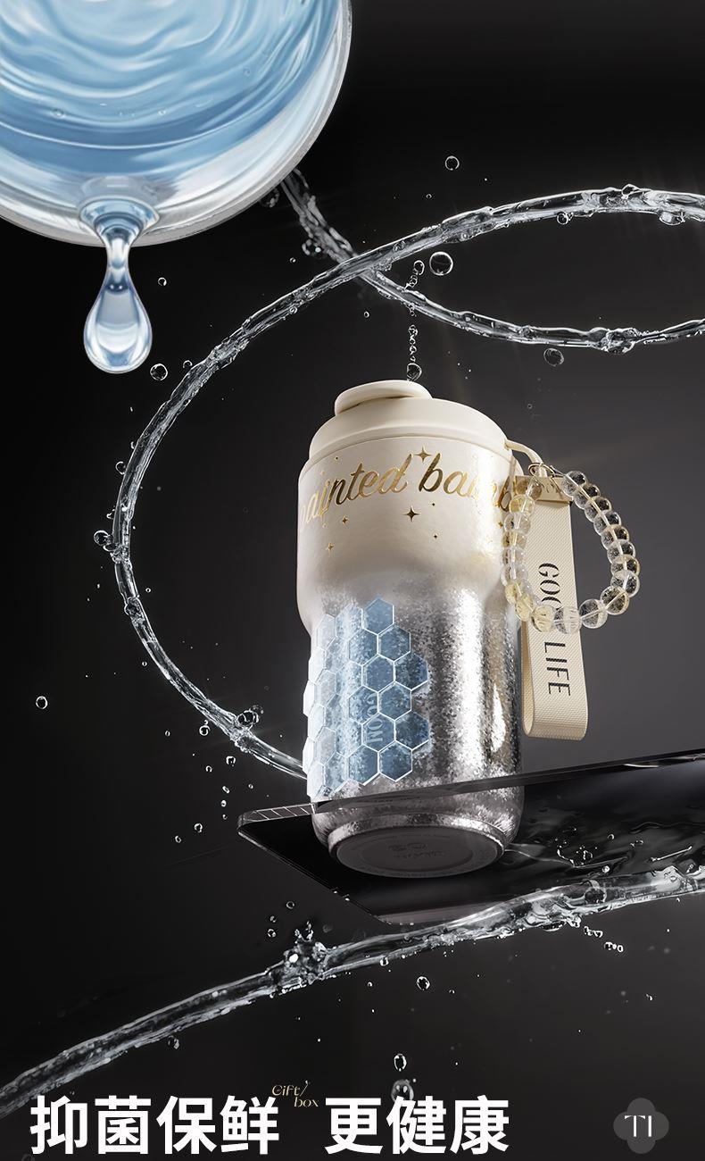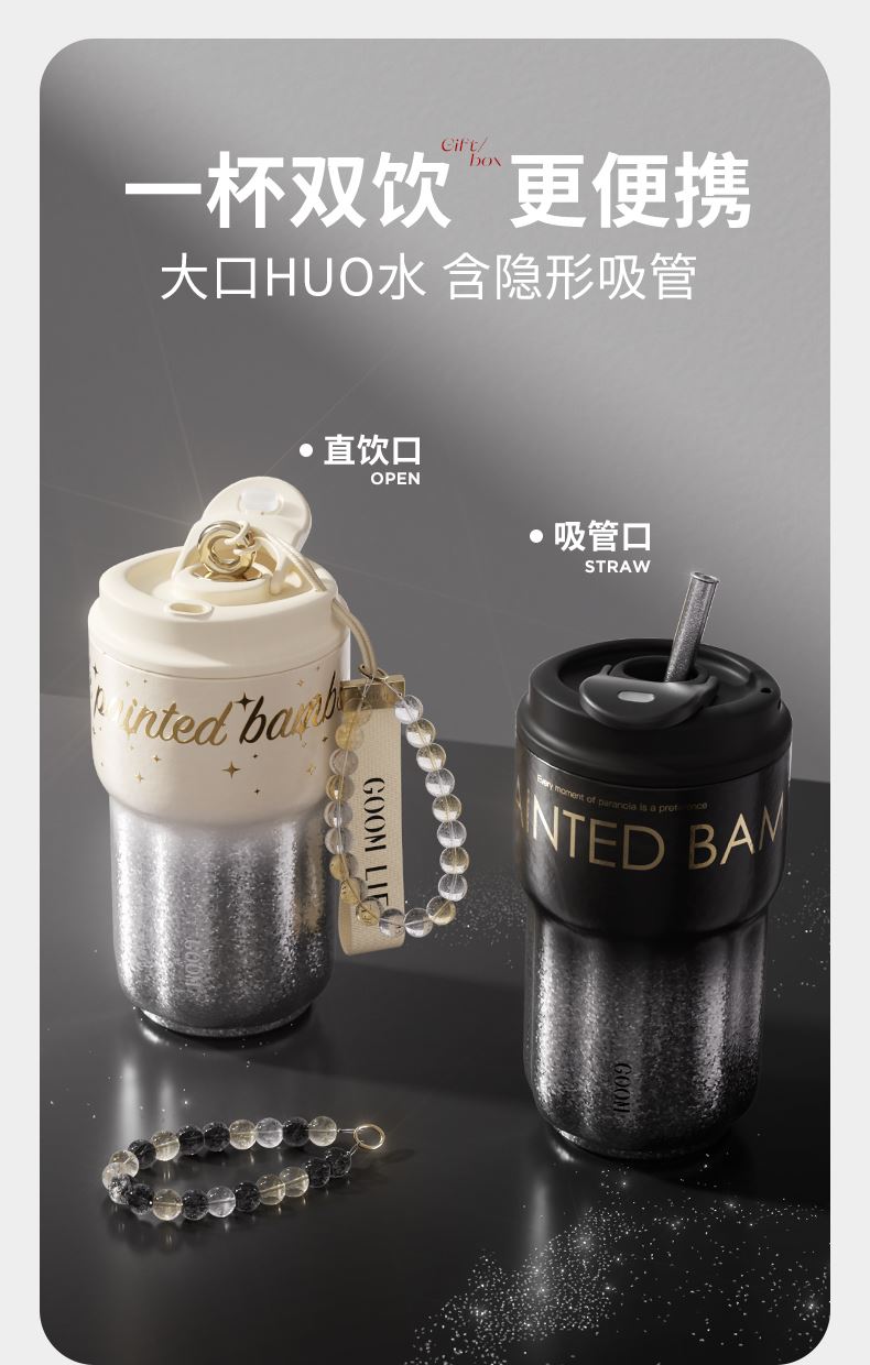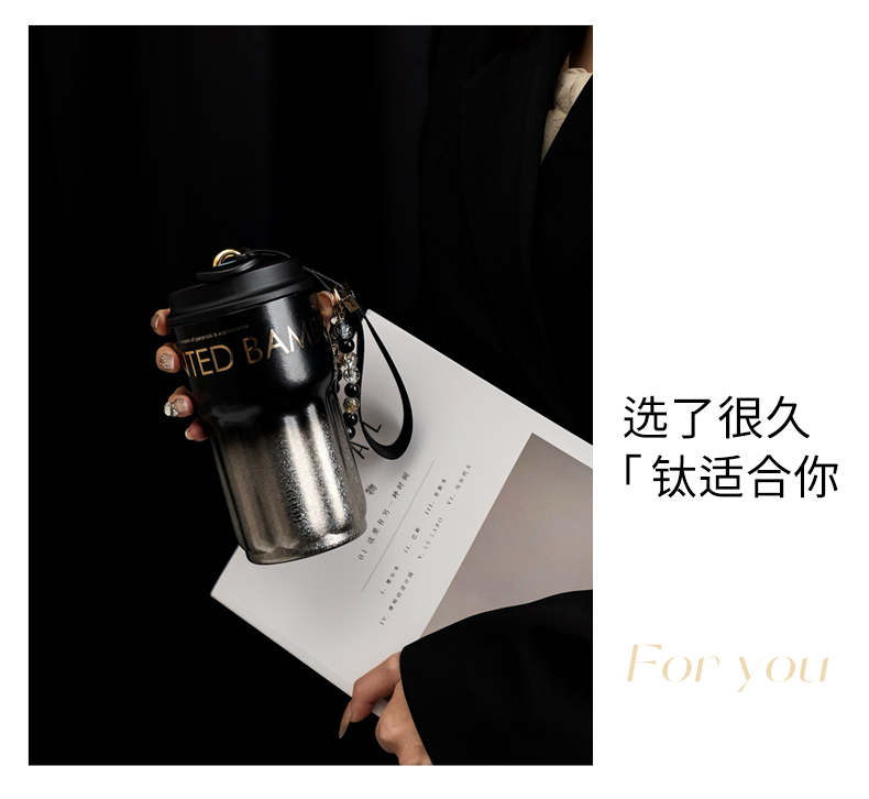 型 号:GM-25AW-B17 颜 色:极夜黑/流光米 材 质:内胆/外壳/吸管—TA1,杯盖塑件— PP聚丙烯(丙烯均聚物),吸管/密封件-硅橡胶,手提绳—蜡绳、锌合金、涤纶,挂件—锌合金、 琉璃珠 容 量:540ml 1、一杯三饮:敞口痛快喝、直饮口防呛、精致吸管口不花妆 2、密封防漏:360密封,多重防漏,丢进包里安心不漏水 3、安心材质:内胆/外壳/吸管TAI材质,安全无异味 4、科学容量:540ml钛式平衡,轻量杯身装足全天饮量 5、礼盒装备:藏于日用,钛杯承载长久陪伴 6、琉璃珠链:防烫拎手+防丢神器,微闪珠光为日常添彩