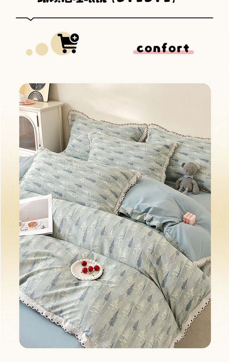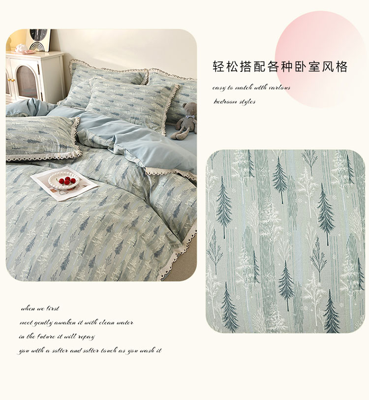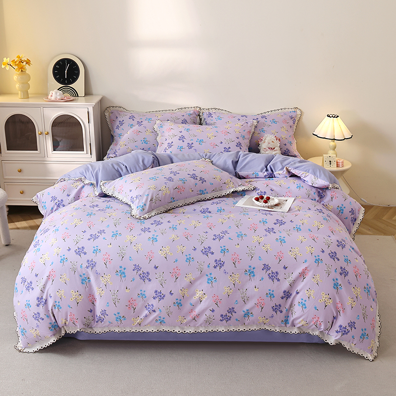 亿瞬间小清新水洗棉花边四件套