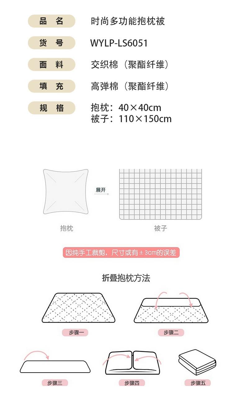 無印良品时尚多功能抱枕被WYLP-LS6051