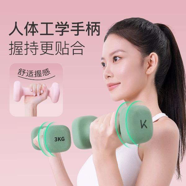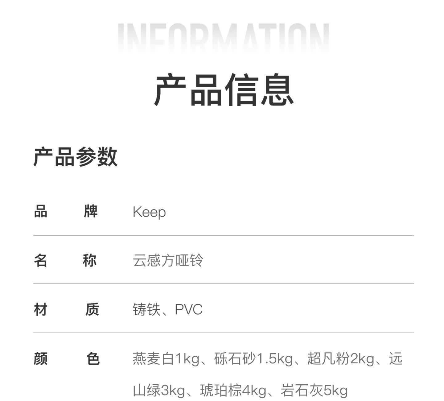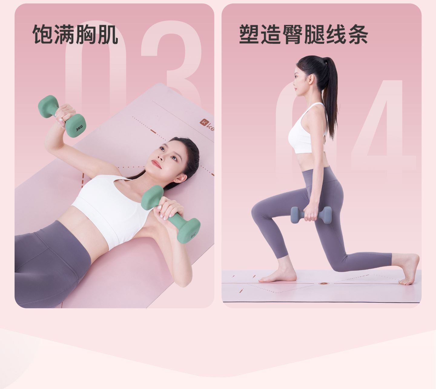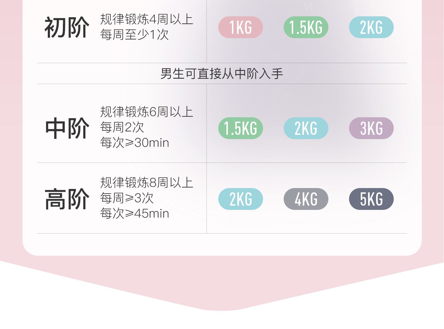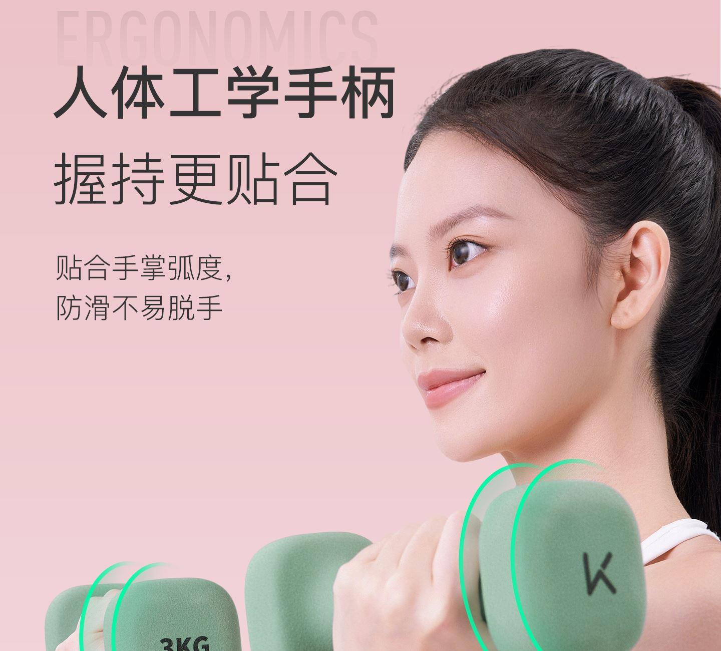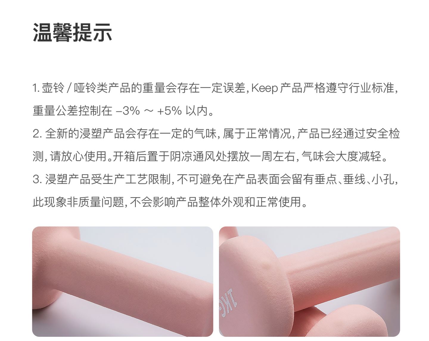 实心铸铁PVC环保无毒材质 浸塑层增厚至3mm 方形结构不宜滚动立放也能收纳弧形握把贴合手掌 握感全新升级 1.5KG*2