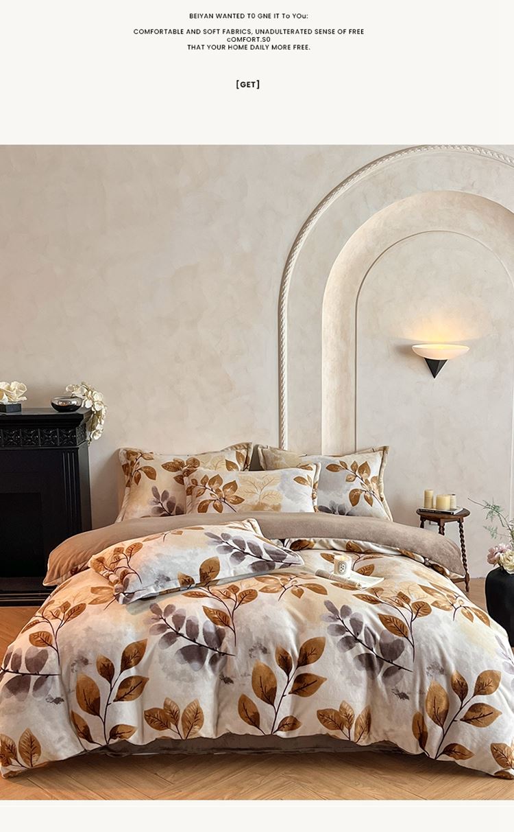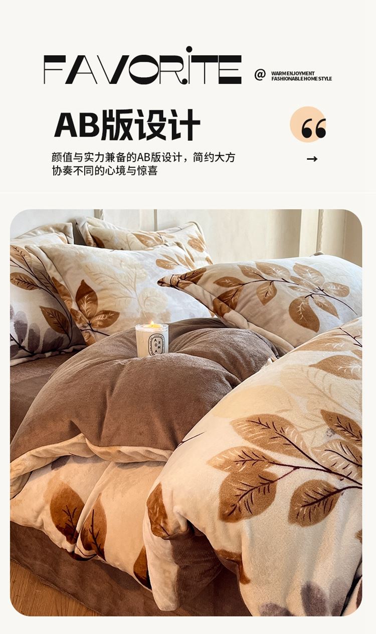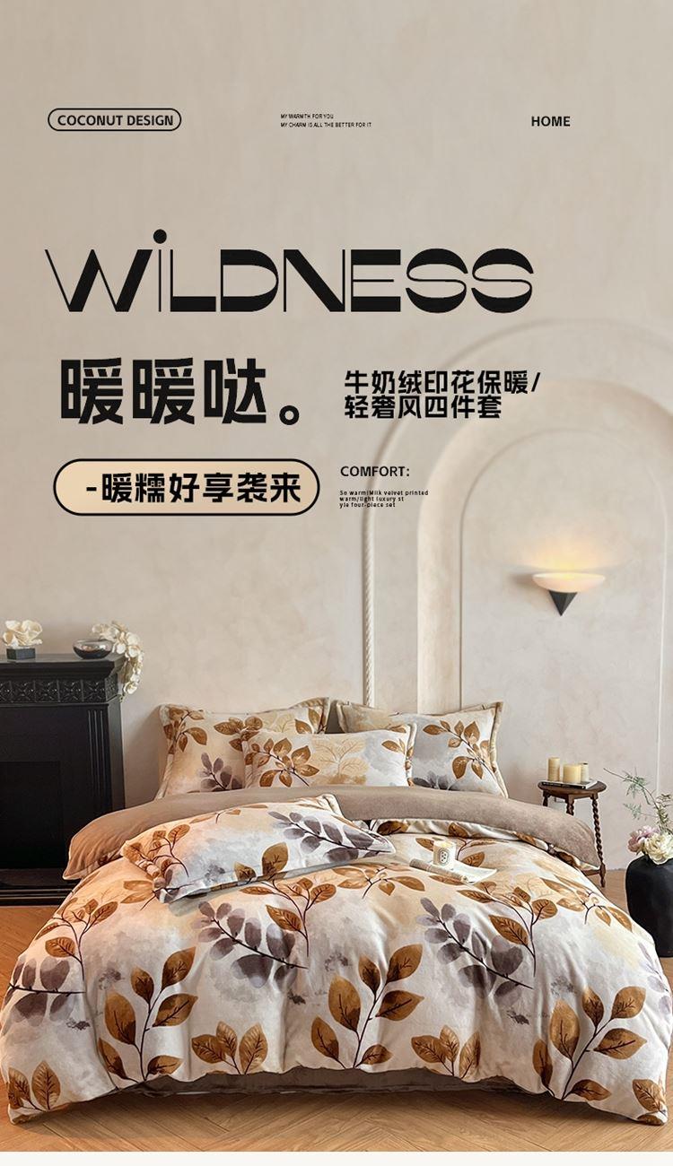花花公子-家纺-秋冬保暖加厚印花牛奶绒四件套