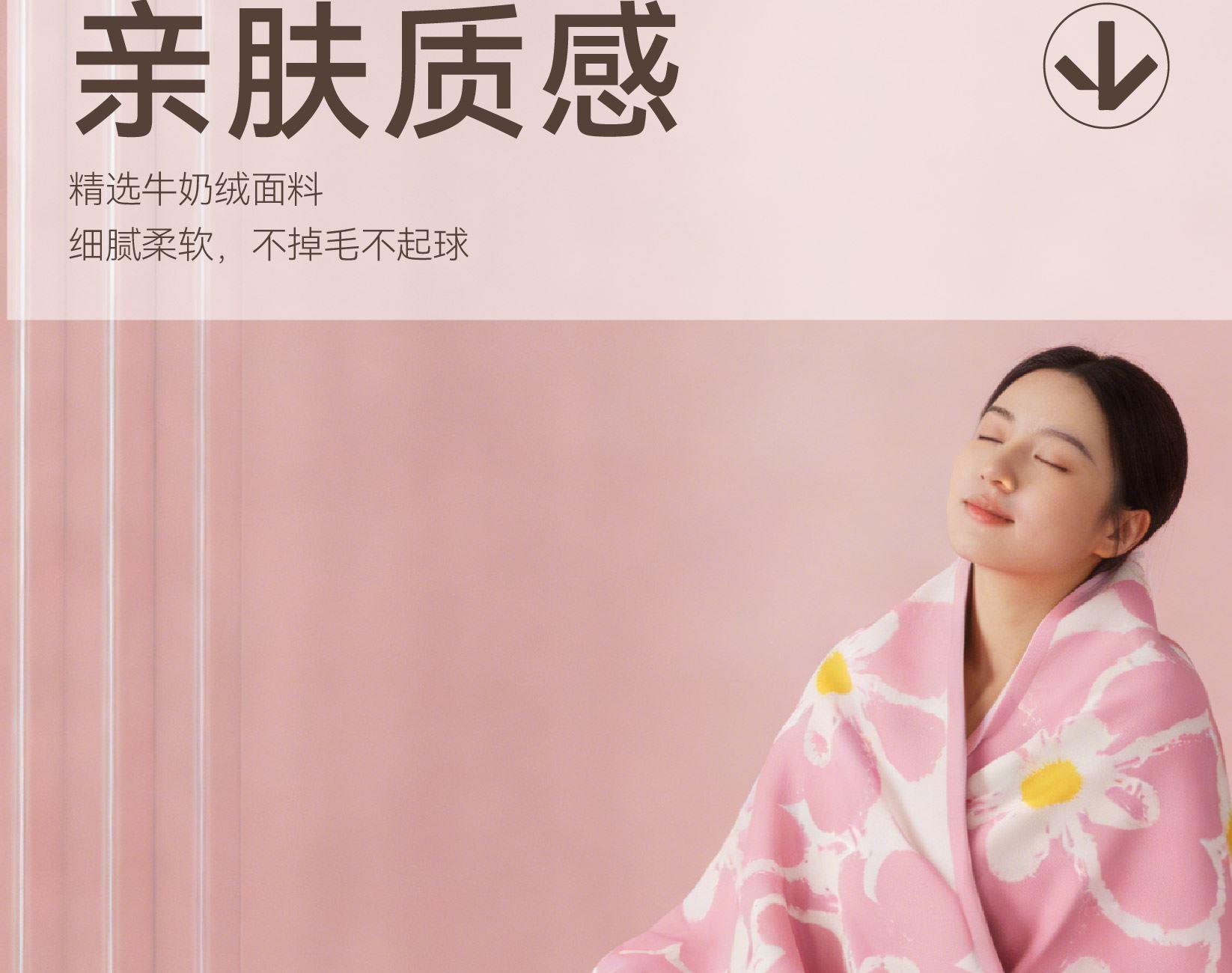 以安眠作土壤,在呼吸间长出花园 枕卧花影,让每个梦都从日常里开花 给身体一隅会开花的暖巢 当粉色漫过梦境,你是被花朵拥抱的春天本身 尺寸:100x150cm 材质:牛奶绒 包装尺寸:380*290*90mm
