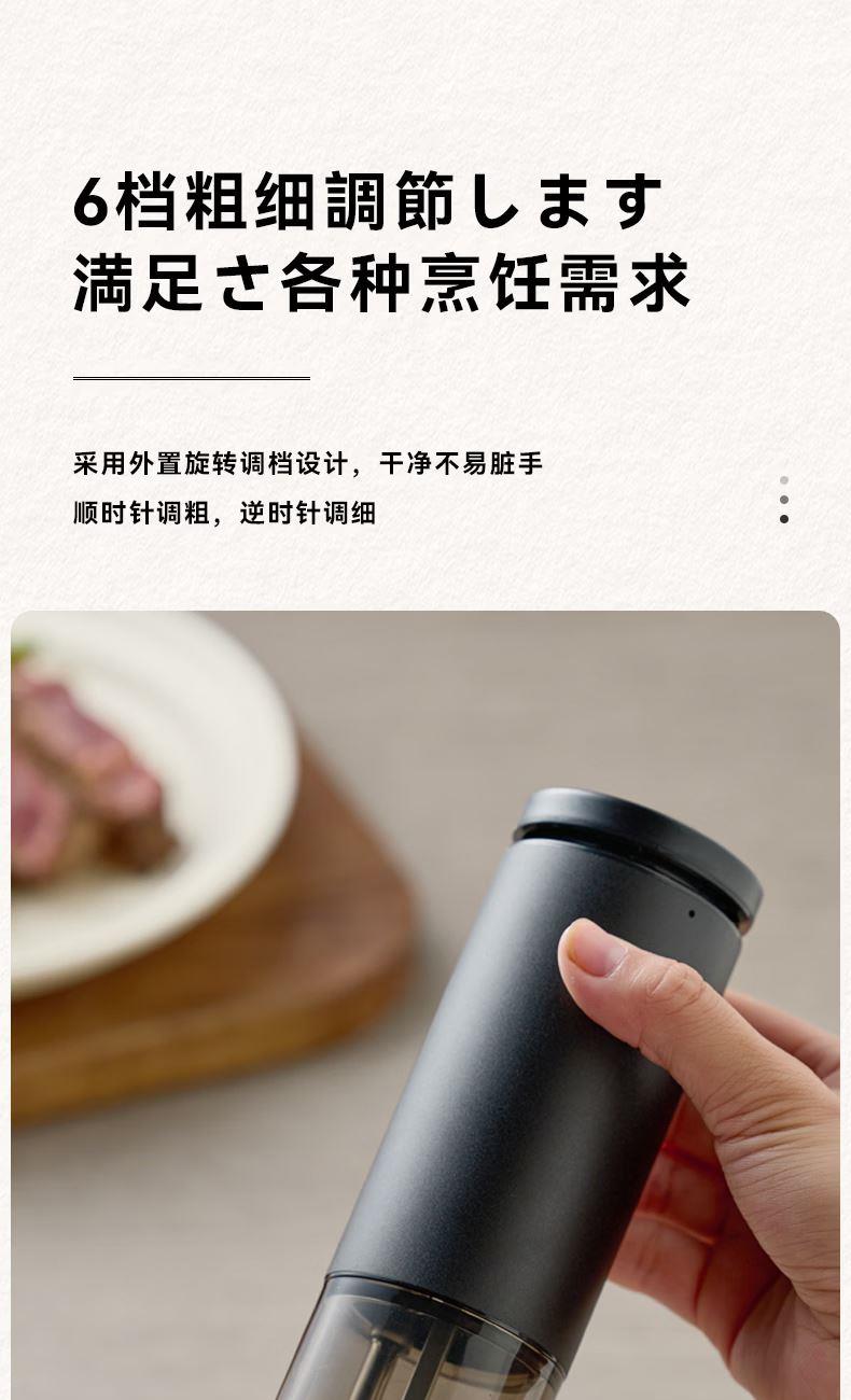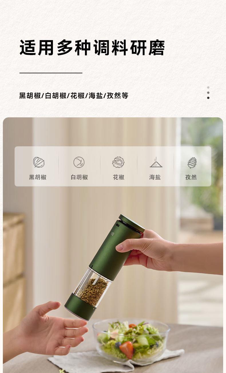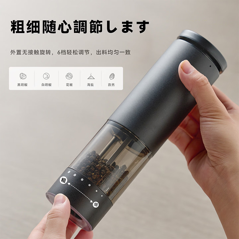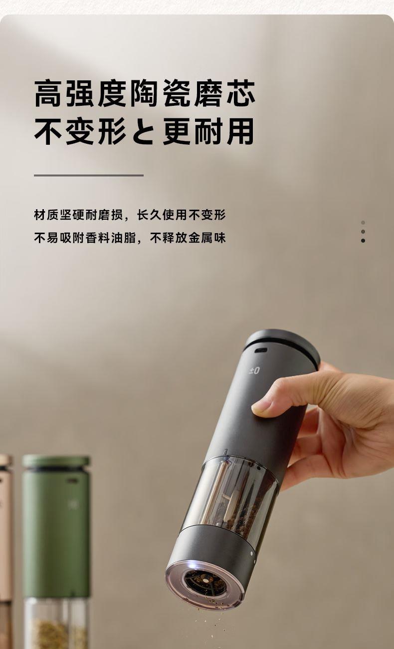 产品型号:CKM-K330 额定电压:5V⎓ 额定功率:10W 产品材质:陶瓷、304 不锈钢 产品净重:约 291g 陶瓷刀片,多档研磨随心调 单手按压操作,使用便利 小巧便携,居家户外皆能用 干电池 + Type-C,供电双选择 大口径设计,香料轻松填入 透明料仓,余量一目了然 极简设计,适配多样家居