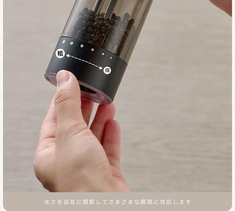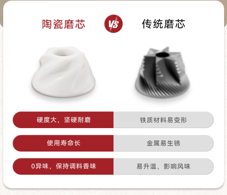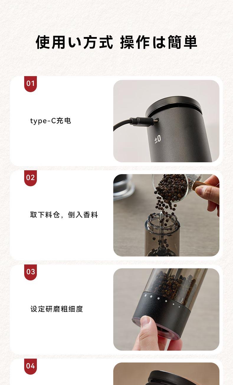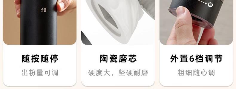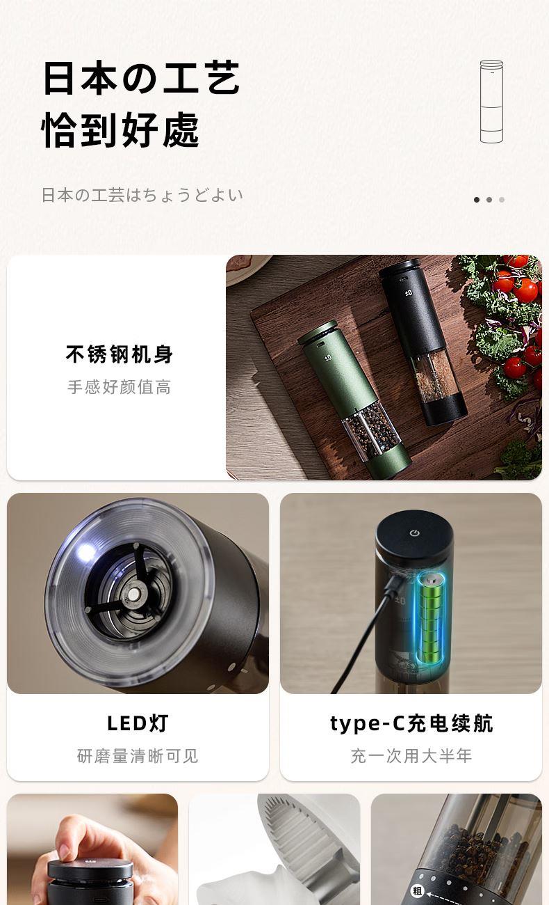 产品型号:CKM-K330 额定电压:5V⎓ 额定功率:10W 产品材质:陶瓷、304 不锈钢 产品净重:约 291g 陶瓷刀片,多档研磨随心调 单手按压操作,使用便利 小巧便携,居家户外皆能用 干电池 + Type-C,供电双选择 大口径设计,香料轻松填入 透明料仓,余量一目了然 极简设计,适配多样家居