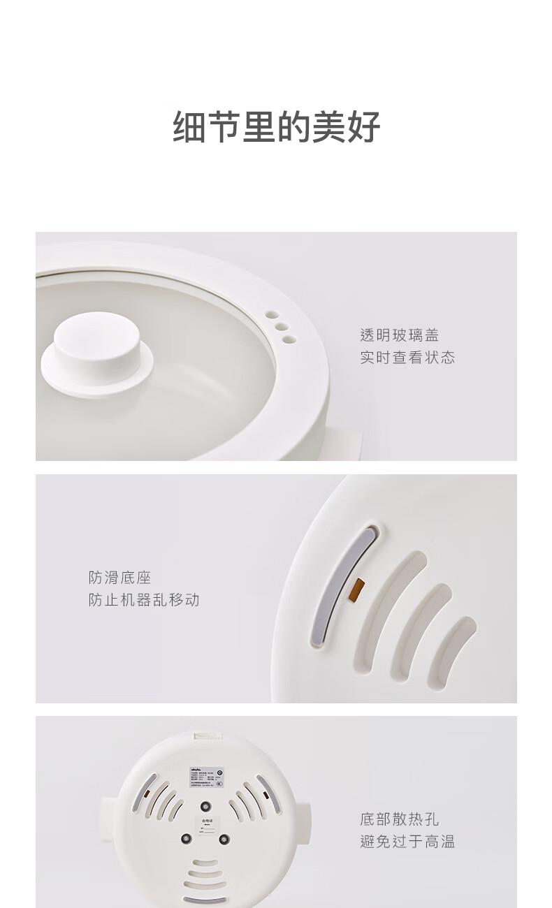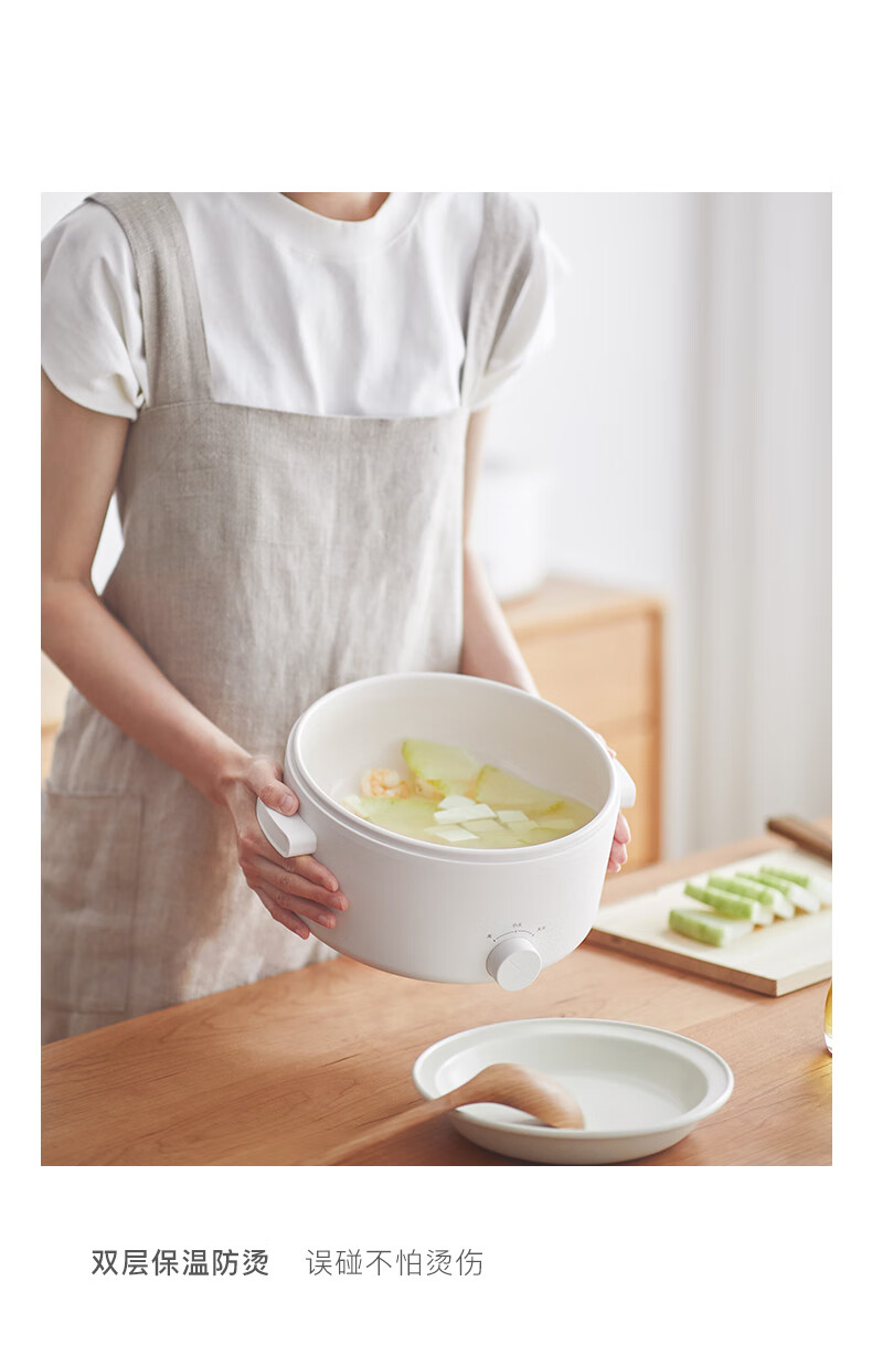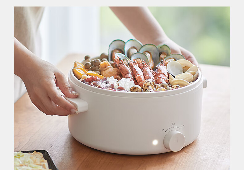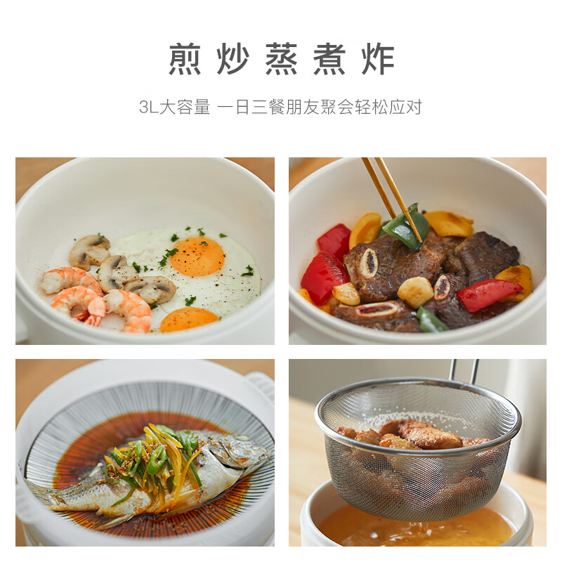 额定功率:1000W 额定容量:3L 毛重:1.74Kg 包装尺寸:283*283*180mm 条码:6941927406480 1. 陶瓷釉内胆,导热快,不糊底 2. 安全易清洗,硬度8H无惧钢丝刷 3. 21cm大口径,锅深7cm,翻炒从容 4. 360°整圈发热,温度稳定,防干烧自动断电