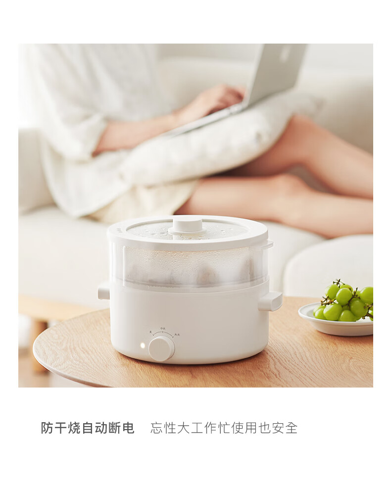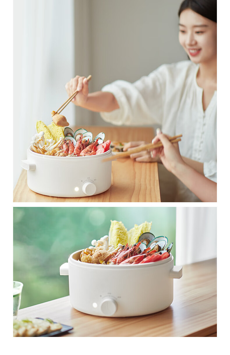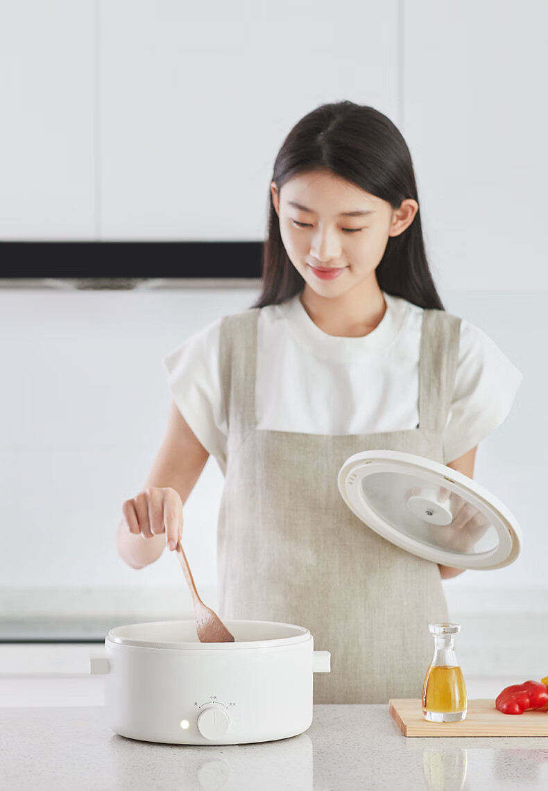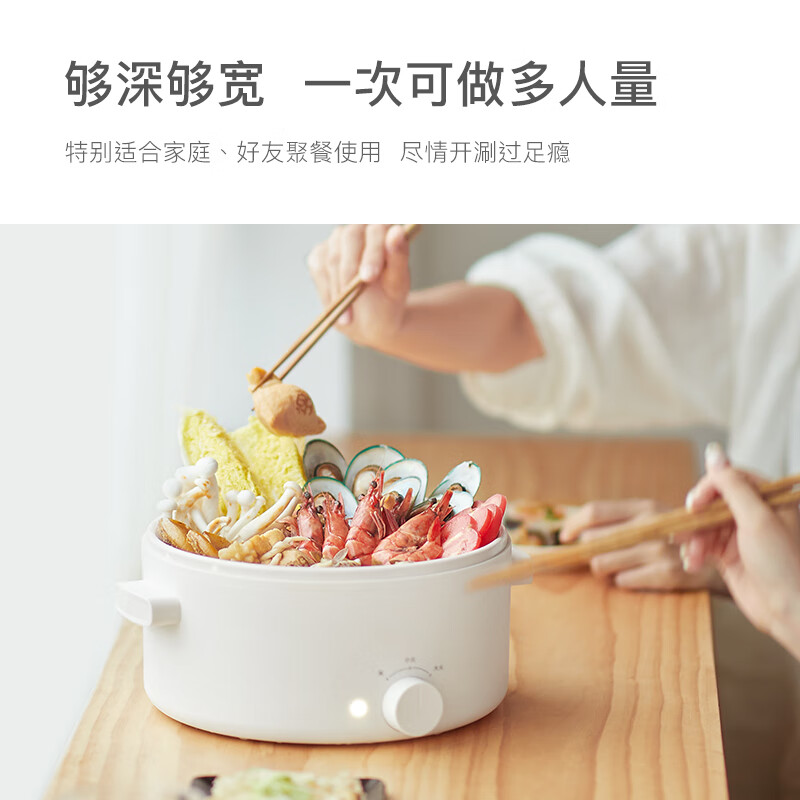 额定功率:1000W 额定容量:3L 毛重:1.74Kg 包装尺寸:283*283*180mm 条码:6941927406480 1. 陶瓷釉内胆,导热快,不糊底 2. 安全易清洗,硬度8H无惧钢丝刷 3. 21cm大口径,锅深7cm,翻炒从容 4. 360°整圈发热,温度稳定,防干烧自动断电