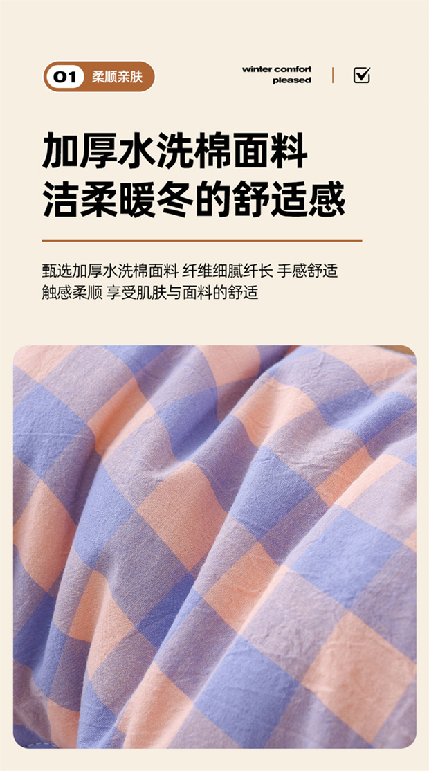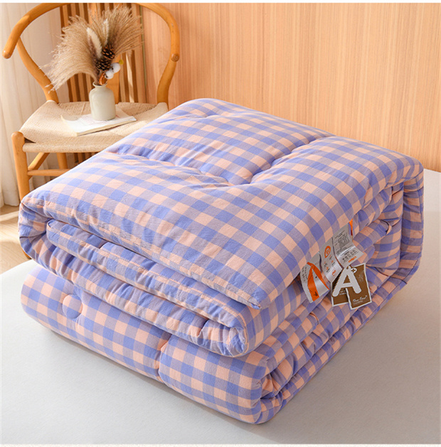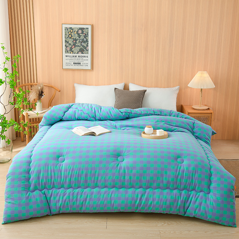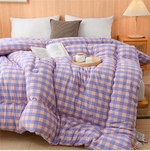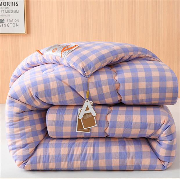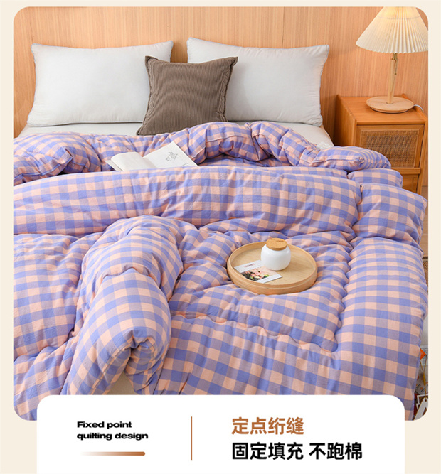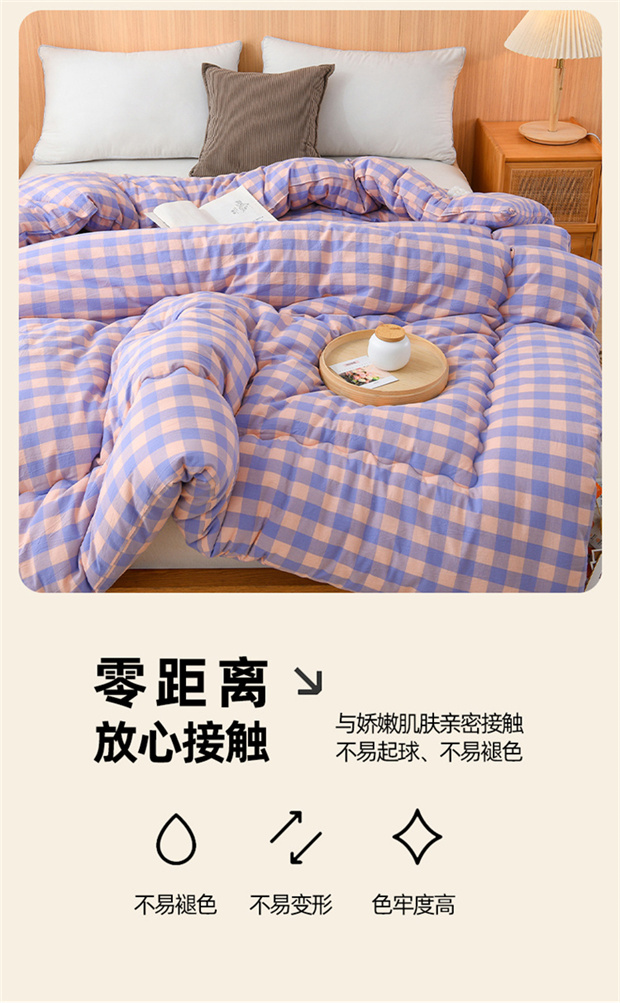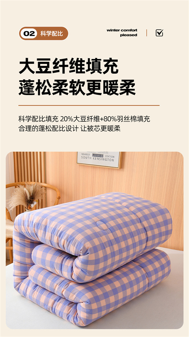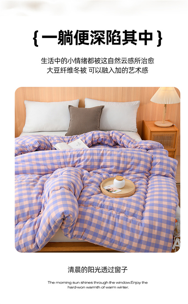 花花公子-家纺-无印风格子大豆纤维秋冬保暖四季被被子被芯
