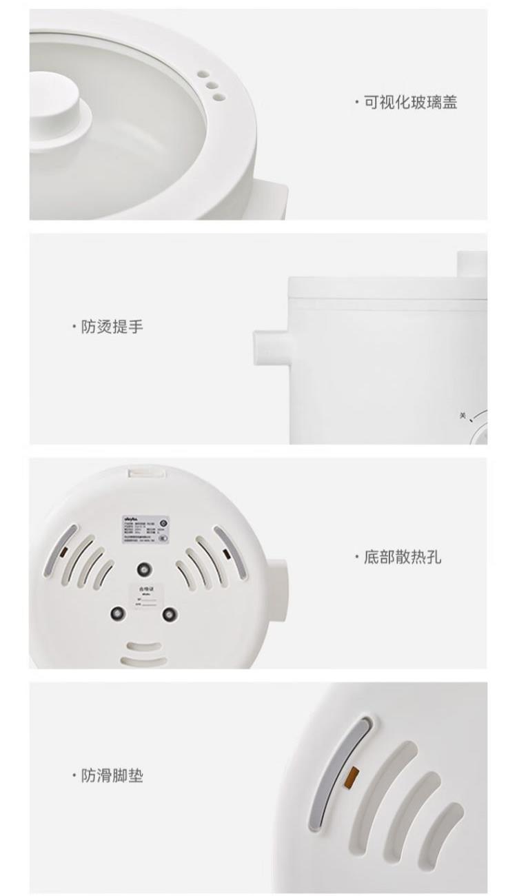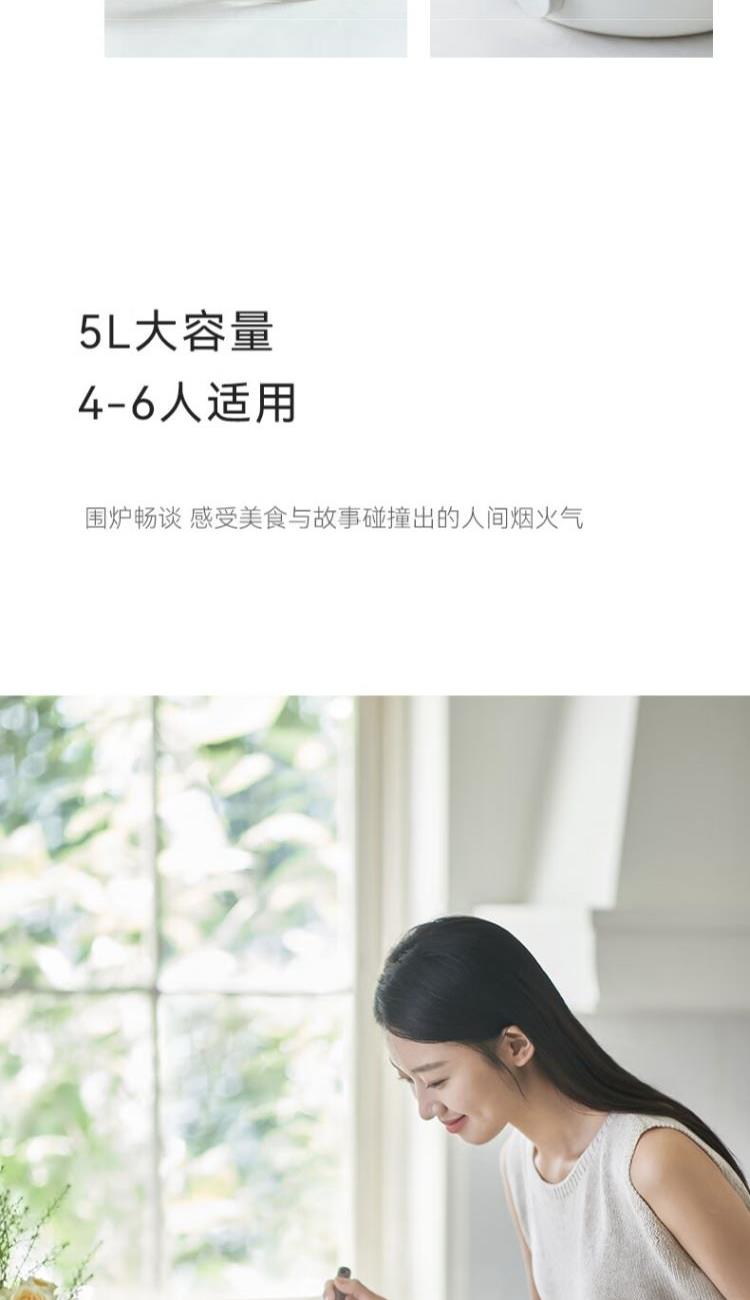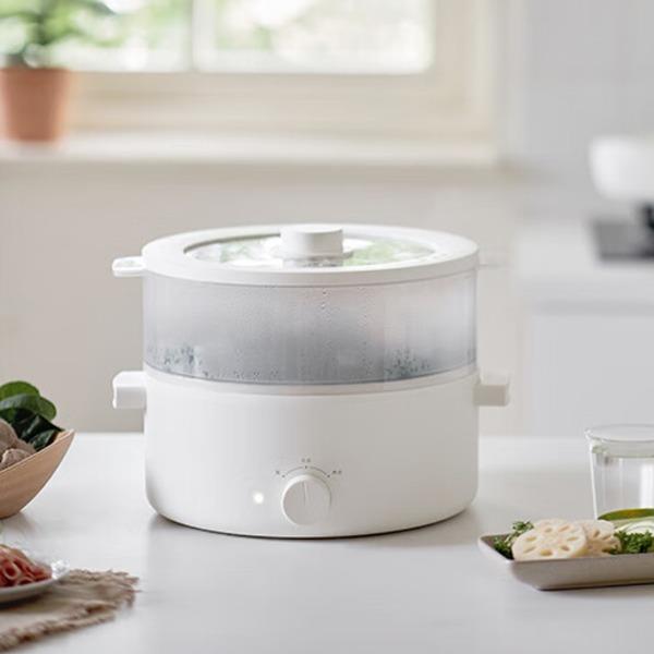 电煮锅:带蒸笼 颜色:陶白色 容量:5L 净重/毛重:2.17kg/2.94kg 额定功率:1400W 产品尺寸:342*290*153mm 条码:6977735711720 1. 聚能导热快,真正不糊底 2. 陶瓷釉内胆,安全易清洗,硬度8H 无惧钢丝刷 3. 28cm大口径,锅深9cm,翻炒从容 4. 360°整圈发热,温度稳定,防干烧自动断电 5. 上蒸下煮,高透明食品级PP蒸笼(耐温180度)
