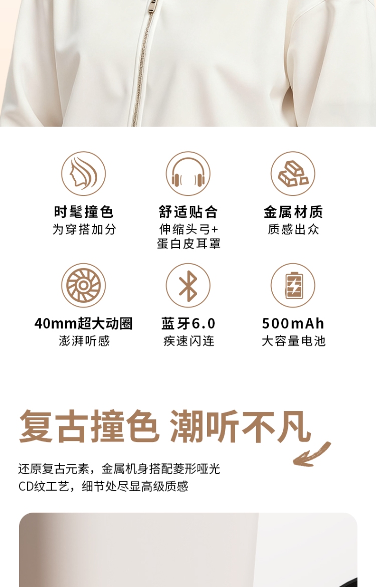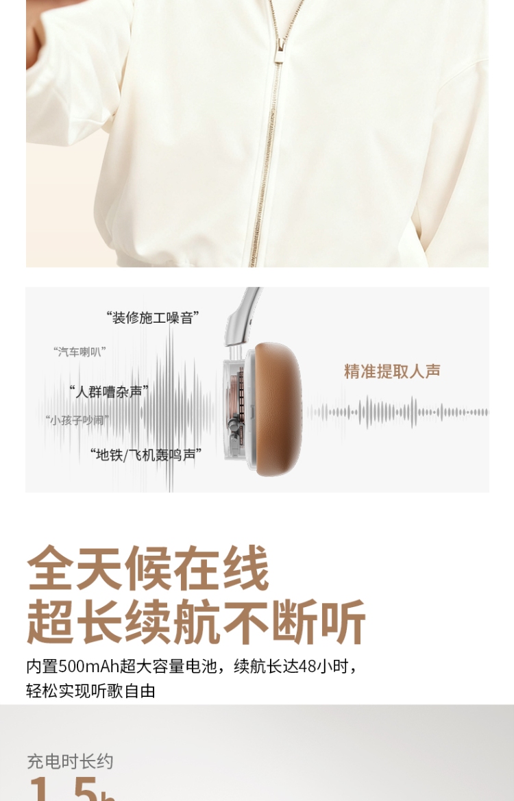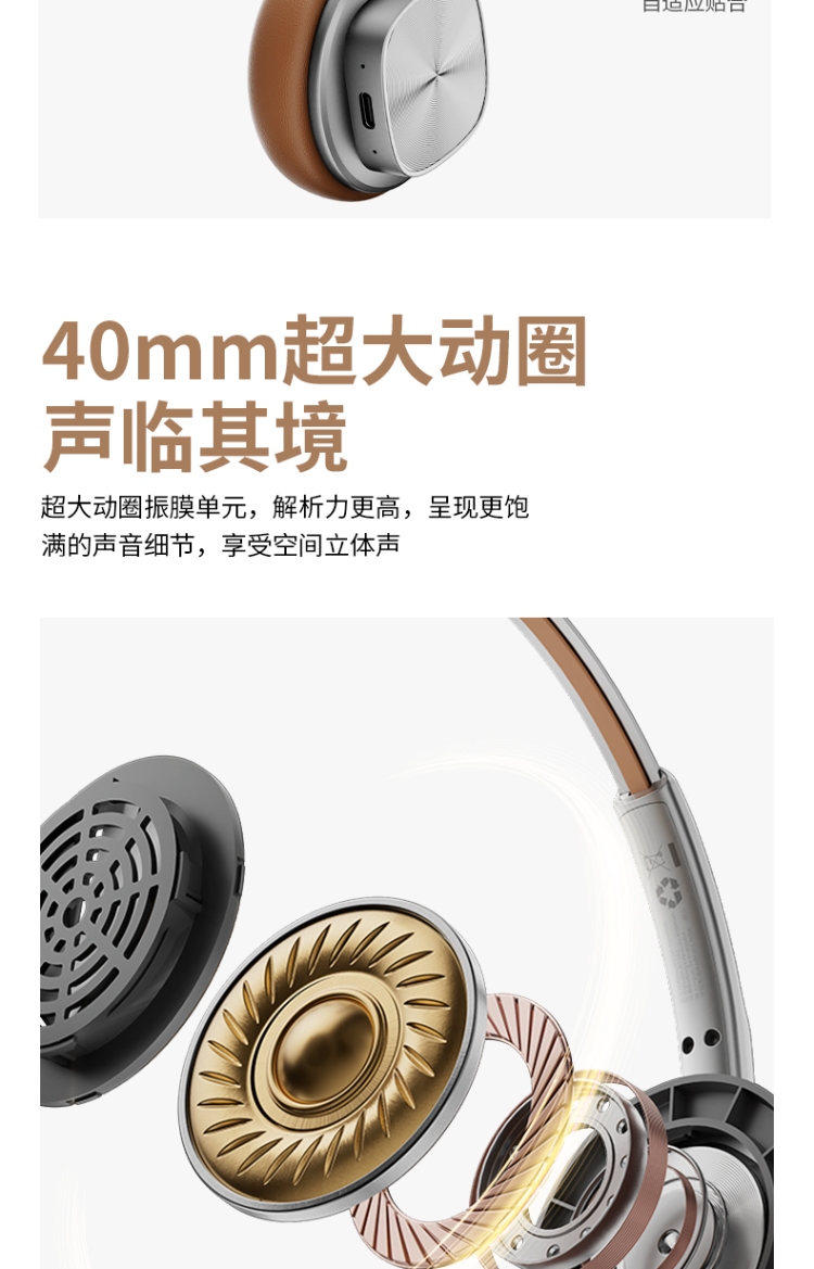 40mm大动圈,空间立体声,高解析,超长续航48H