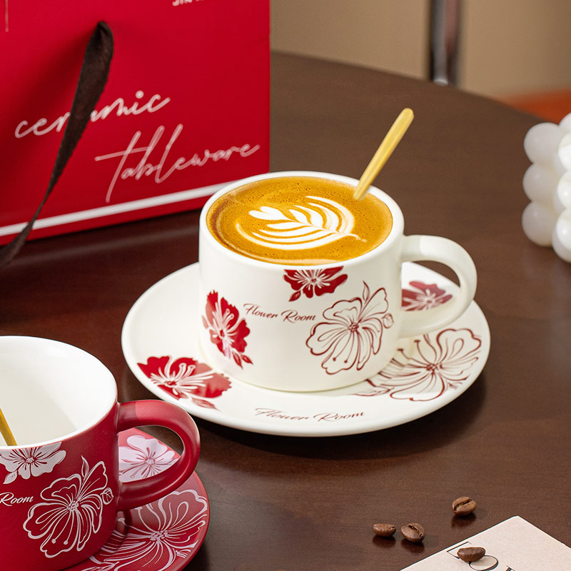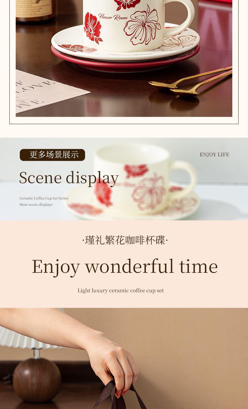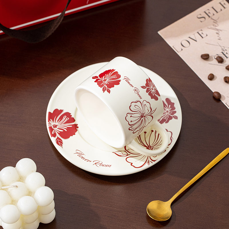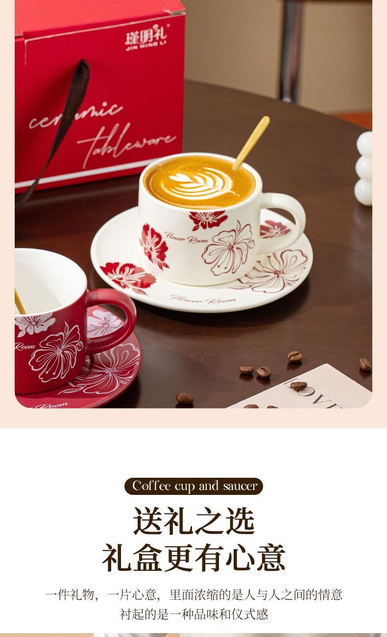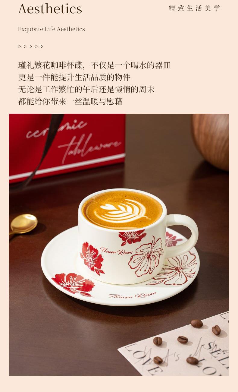 • 瑾明礼-瑾礼繁花-咖啡杯碟-1杯1碟1勺(白色)