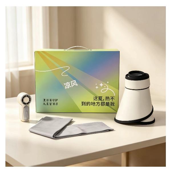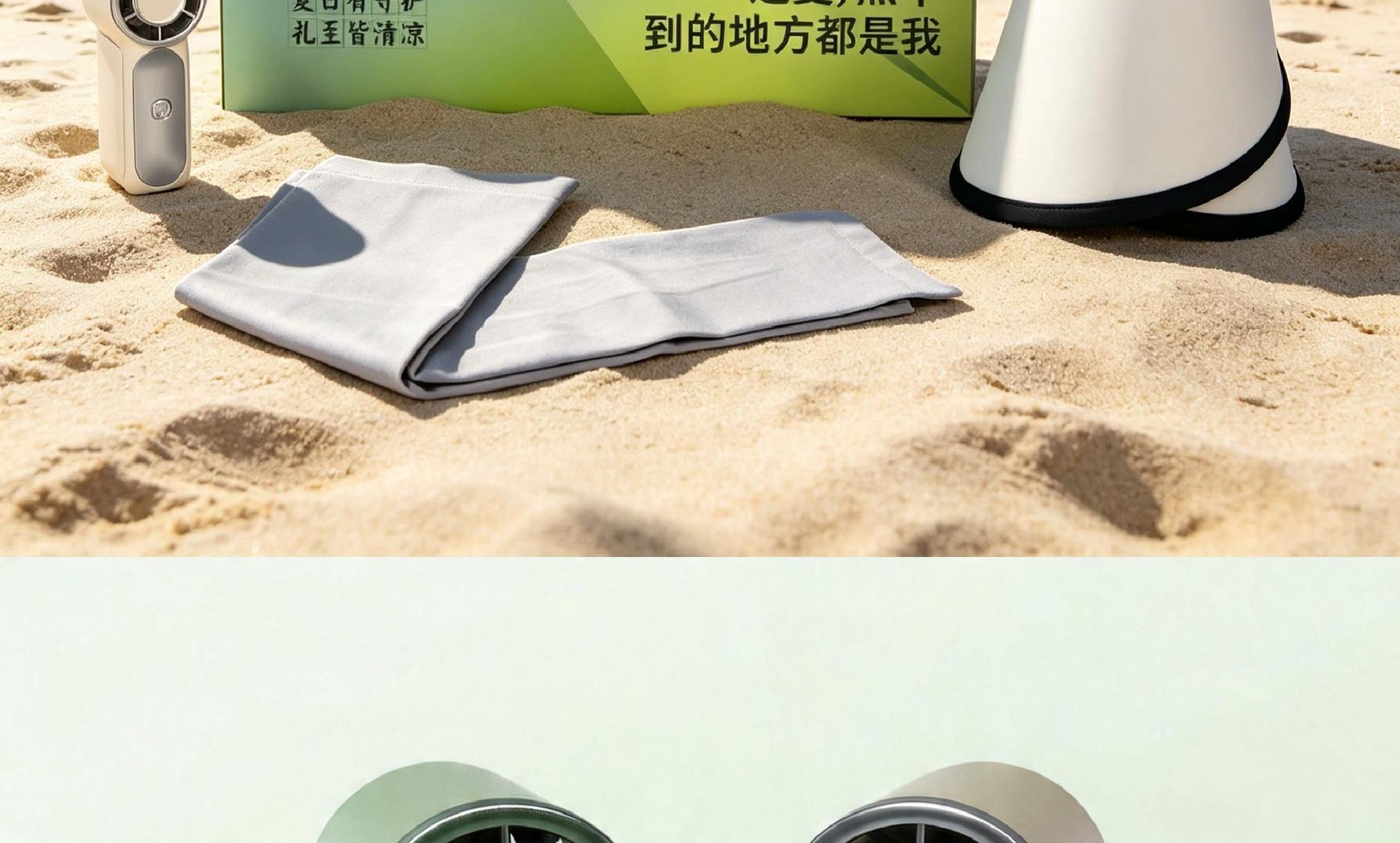 配置: 可卷双面冰丝帽*1 手持高速风扇*1 冰丝袖套*1 主要材质和功能: 可卷冰丝帽:涤纶(聚酯纤维),防晒,透气,遮阳 冰丝袖套:UPF50+,90%锦纶10%氨纶 手持高速风扇:100档调速