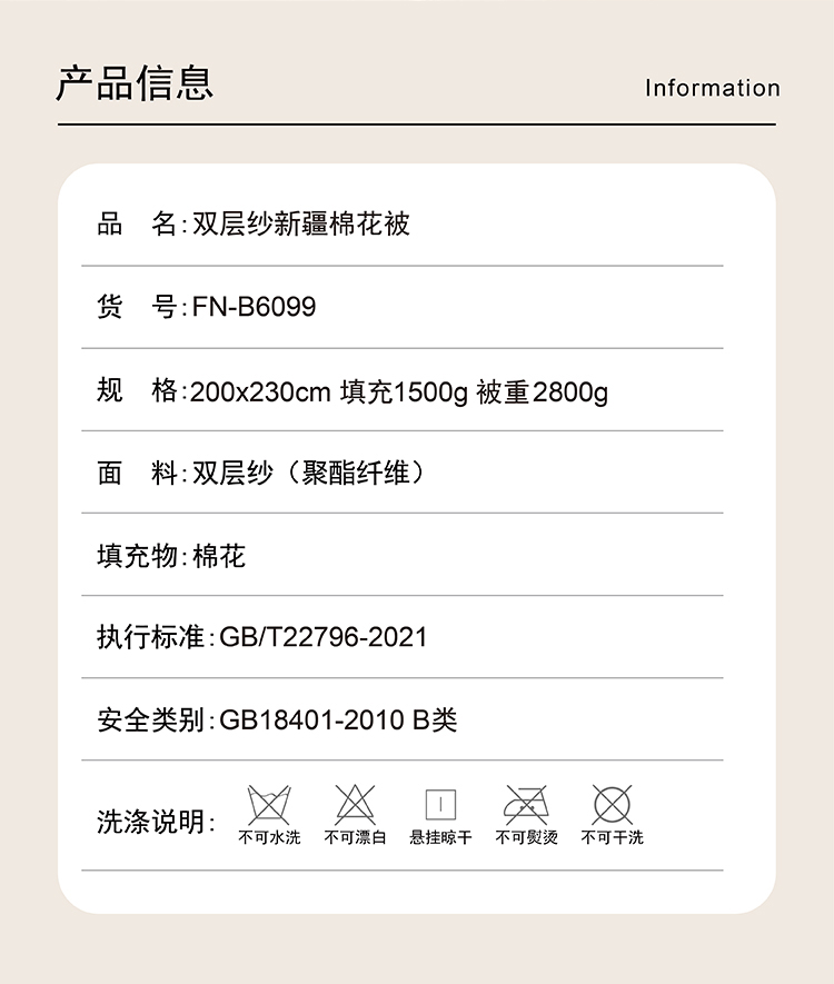 芳恩FN-B6099双层纱新疆棉花被200x230cm