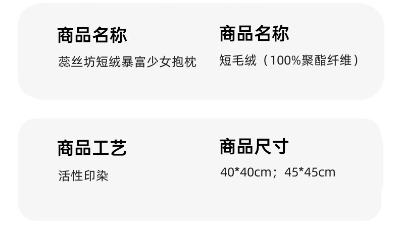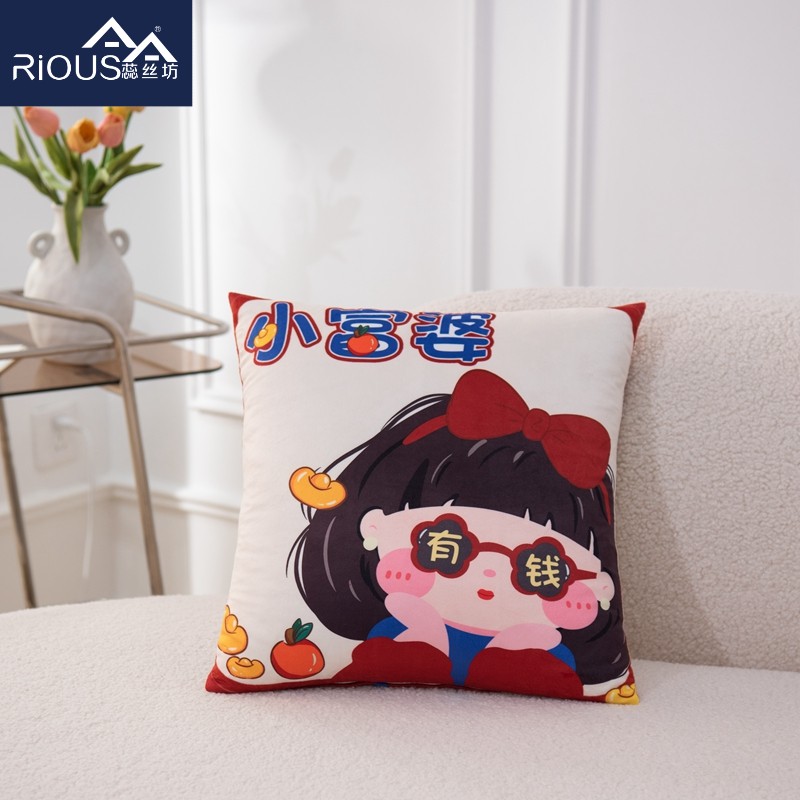 蕊丝坊家纺短绒暴富少女抱枕(可定制)