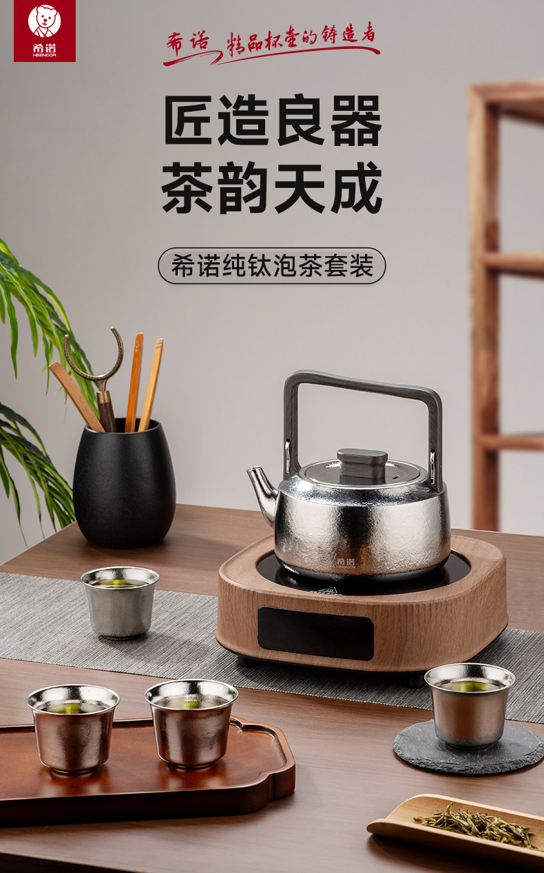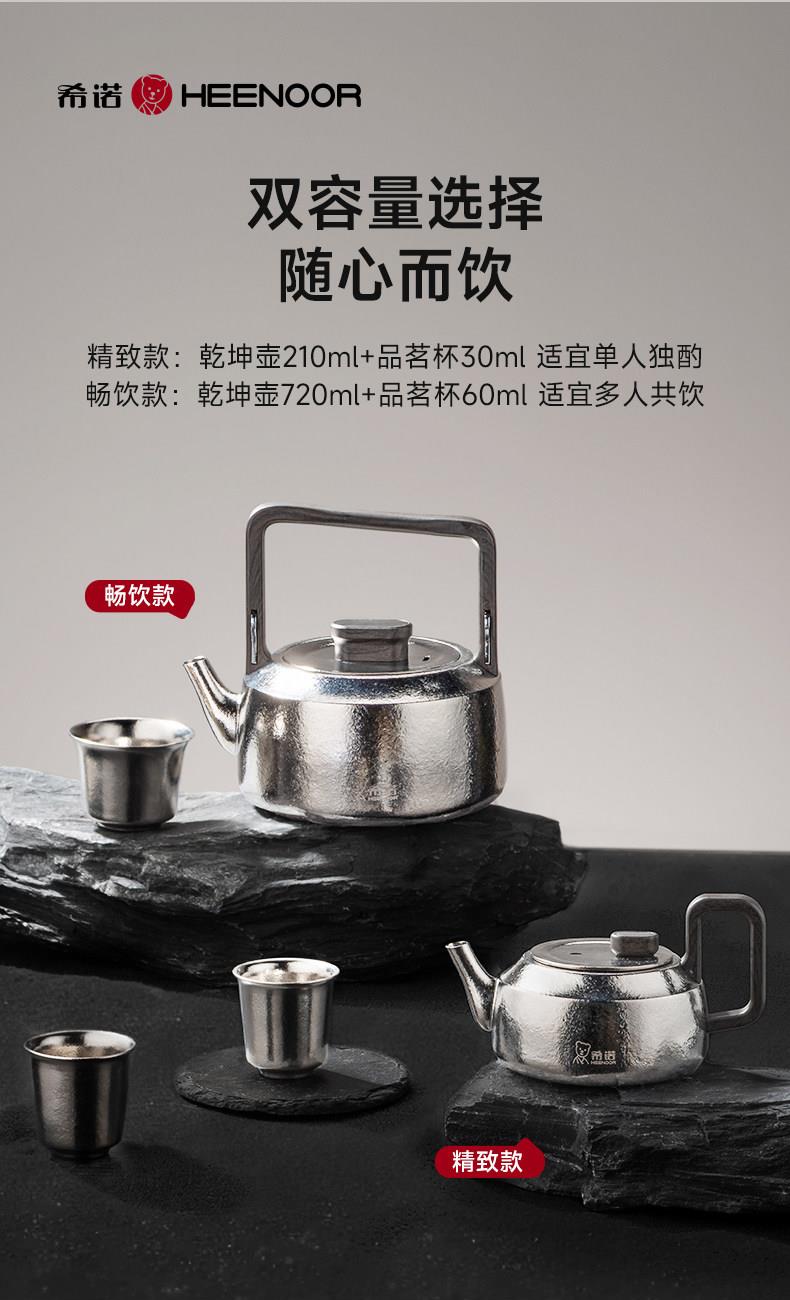 材质: 内胆-钛/杯身-钛 颜色:云海雾凇 套组明细:乾坤壶+品茗杯*4 附加组件:茶漏 容量:乾坤壶T111 210ml/品茗杯T113 30ml