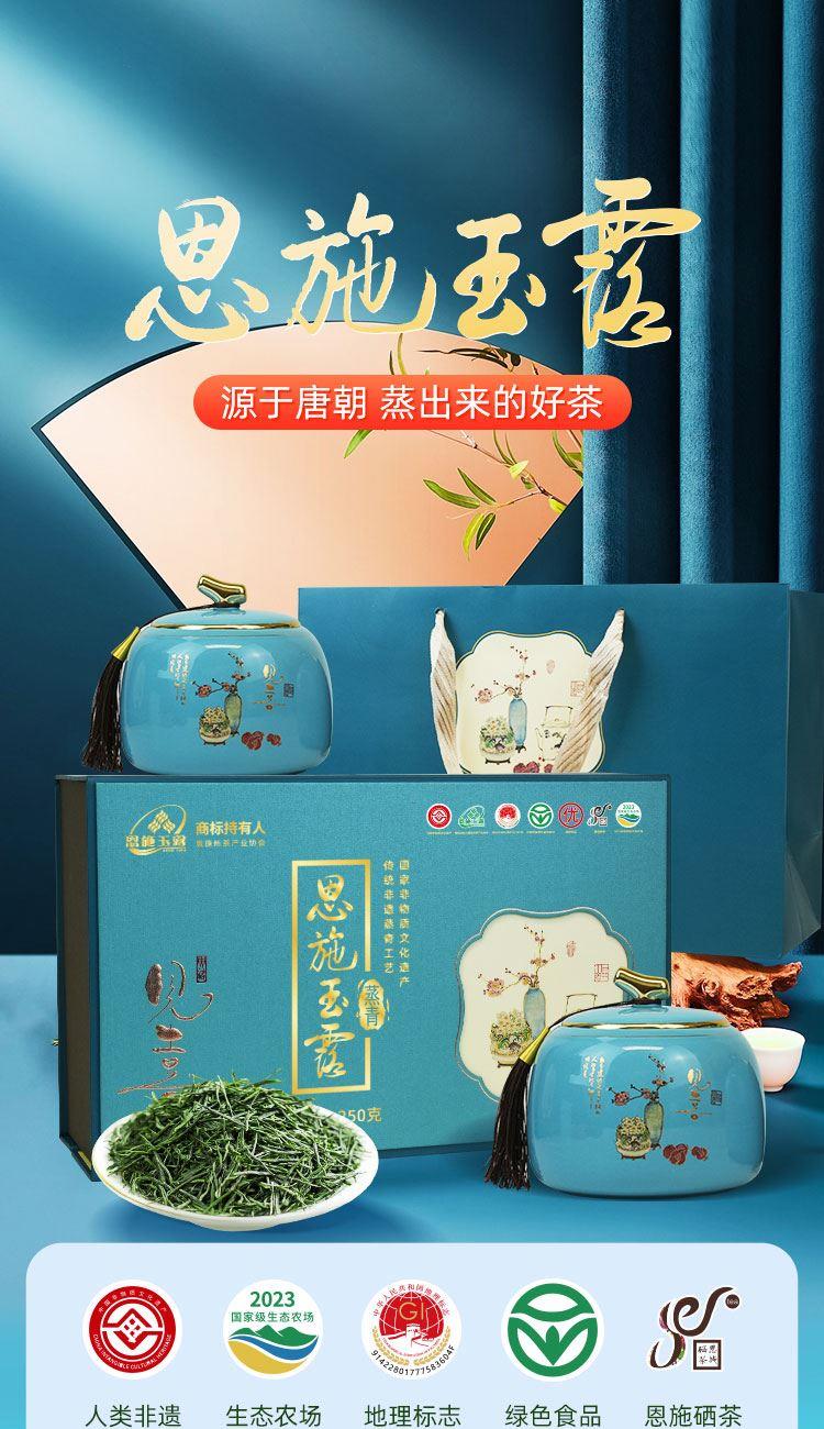 茶马世家双喜临门一级恩施玉露描金双瓷罐礼盒装250g