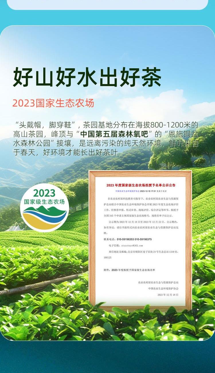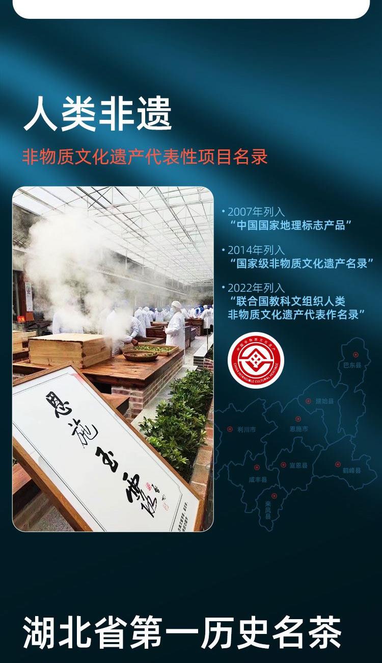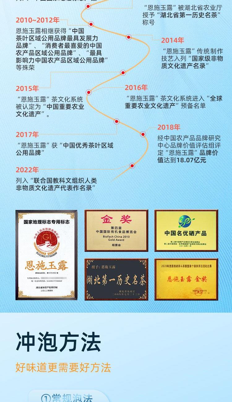 茶叶等级:一级 净含量:250g 产品口感:鲜爽回甘·清香持久 产地 :湖北省恩施市 保质期:18个月 冲泡水温:85℃左右 贮存方式 :防潮、通风、避光、防异味、冷藏更佳