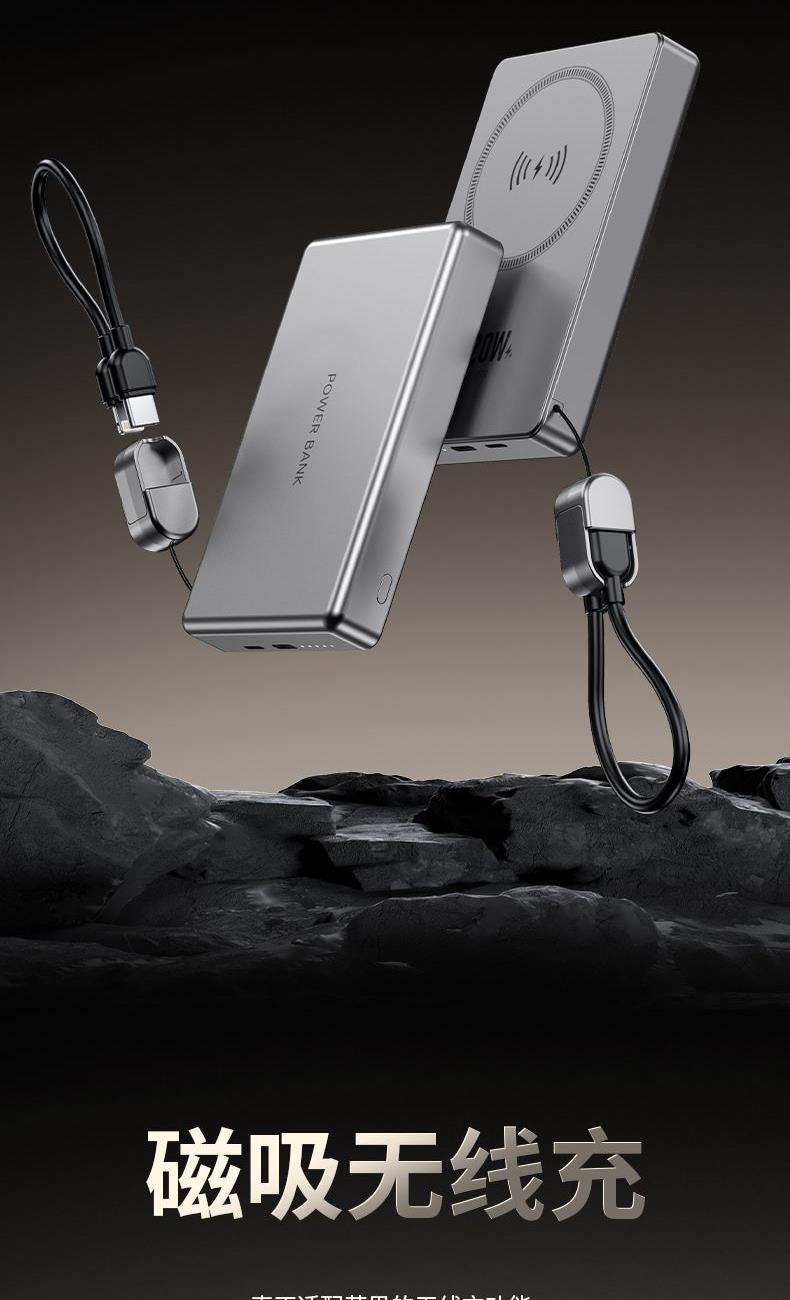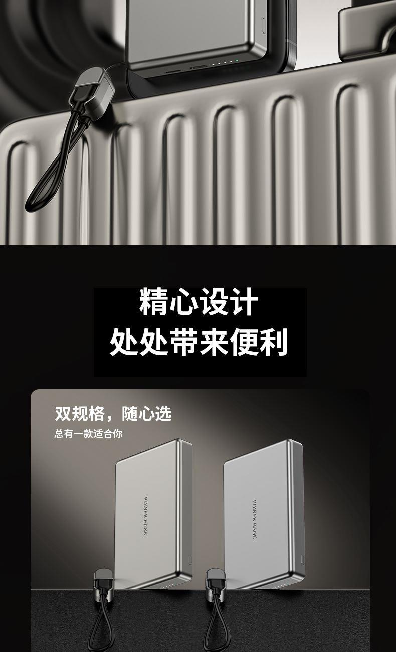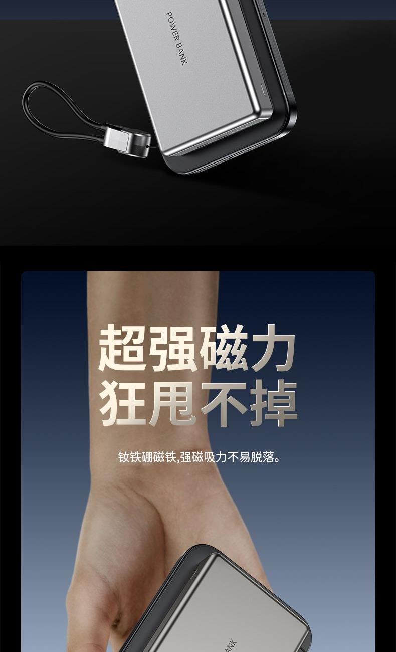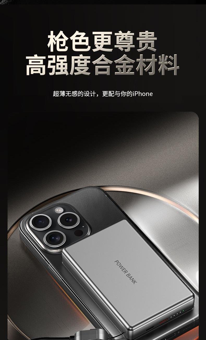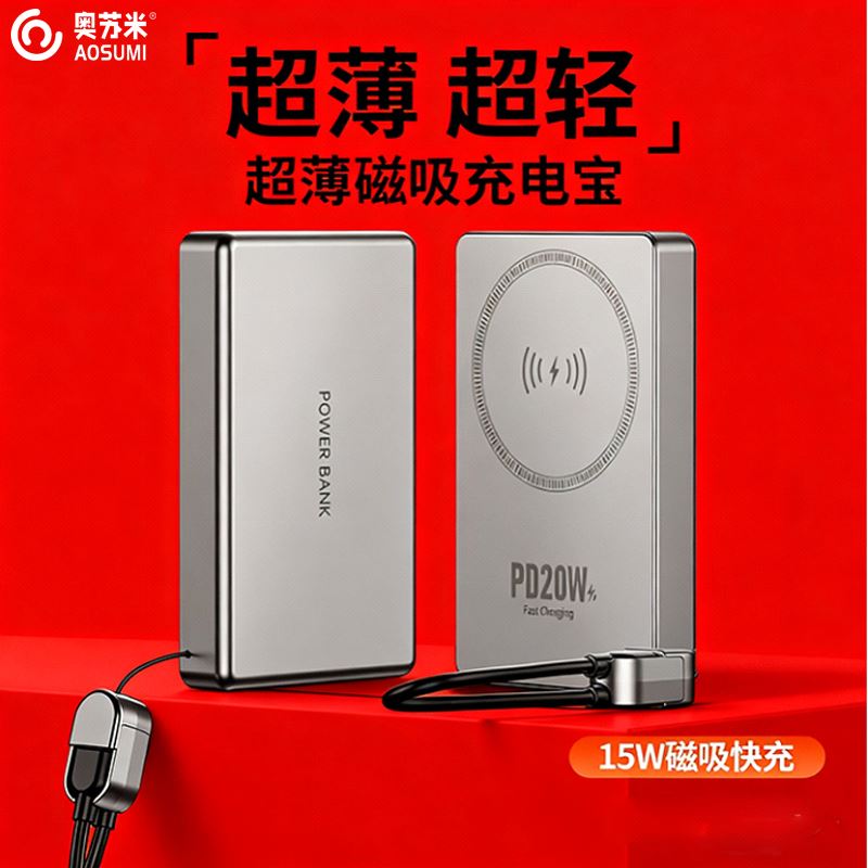 • 奥苏米3C认证超薄商务铝合金磁吸带线充电宝