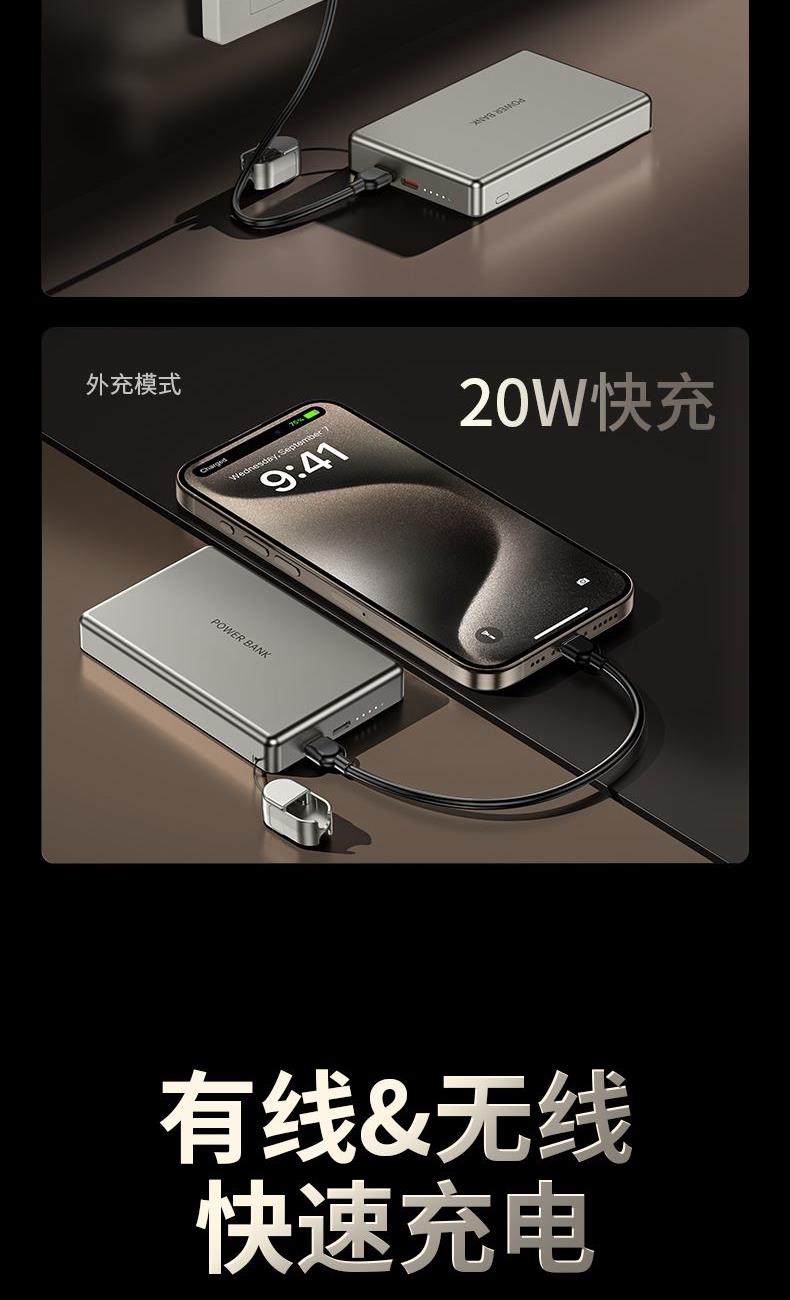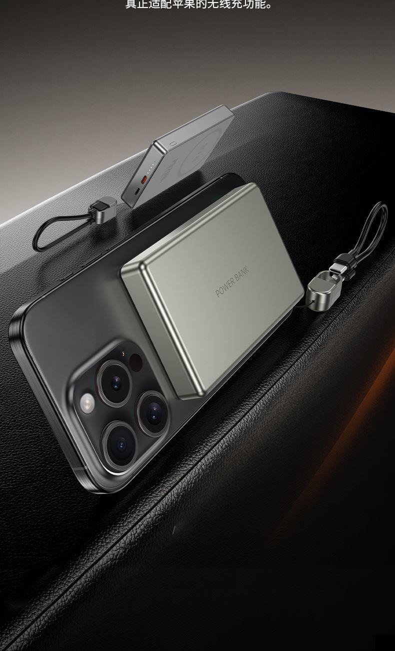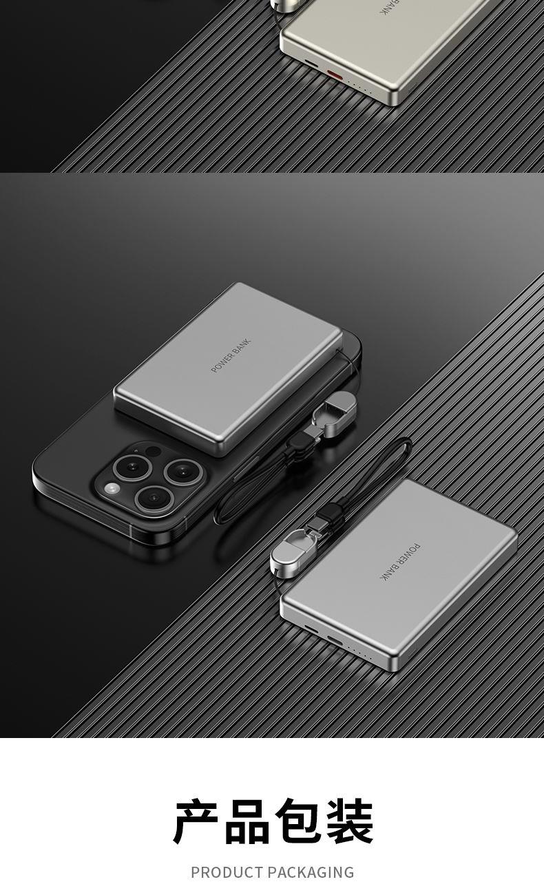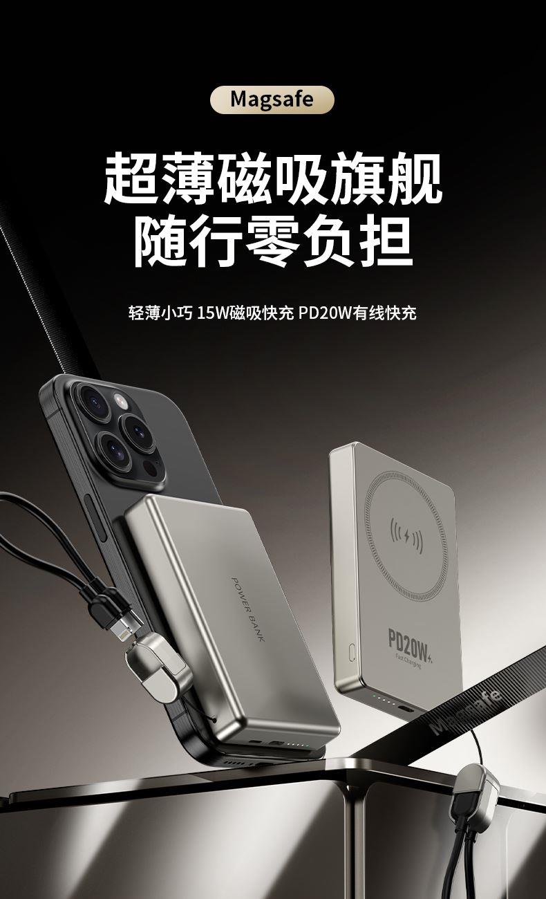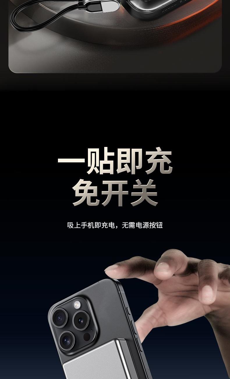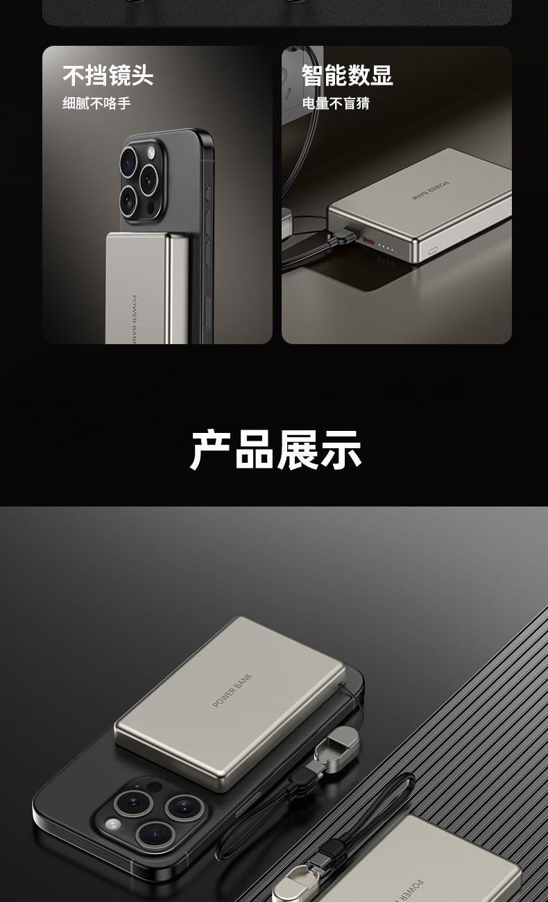 • 奥苏米3C认证超薄商务铝合金磁吸带线充电宝