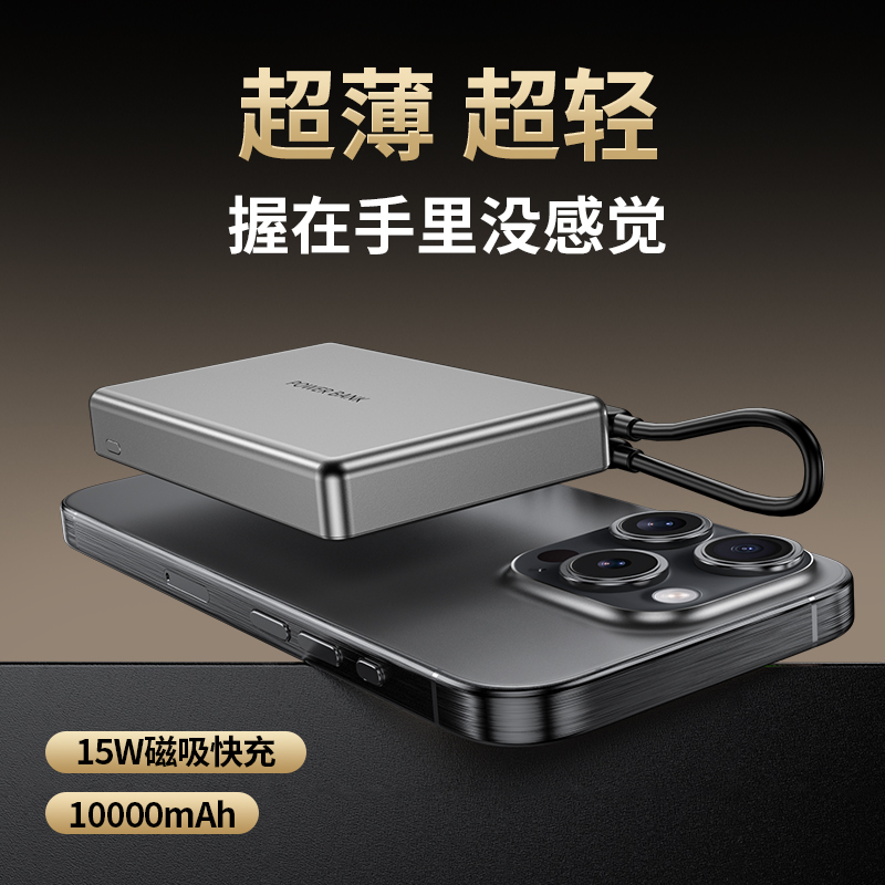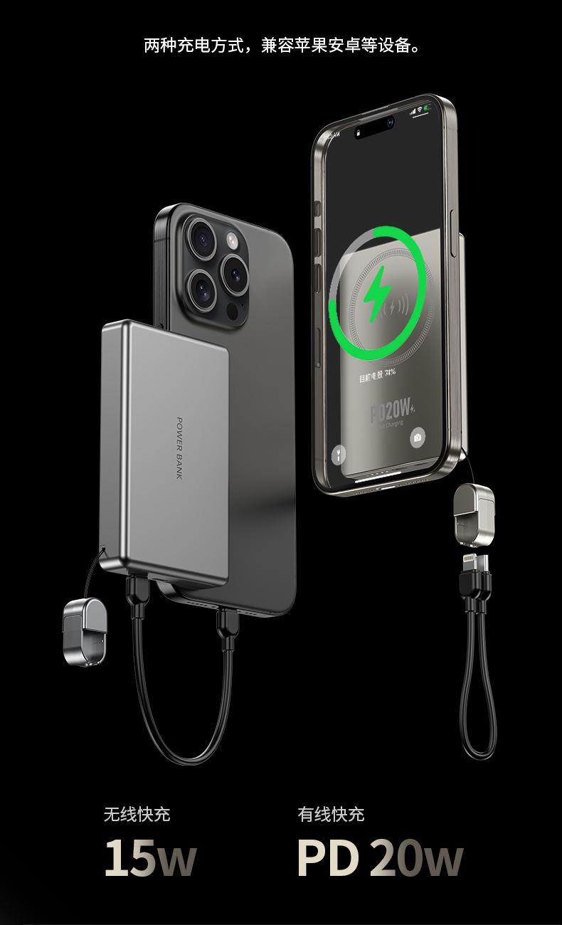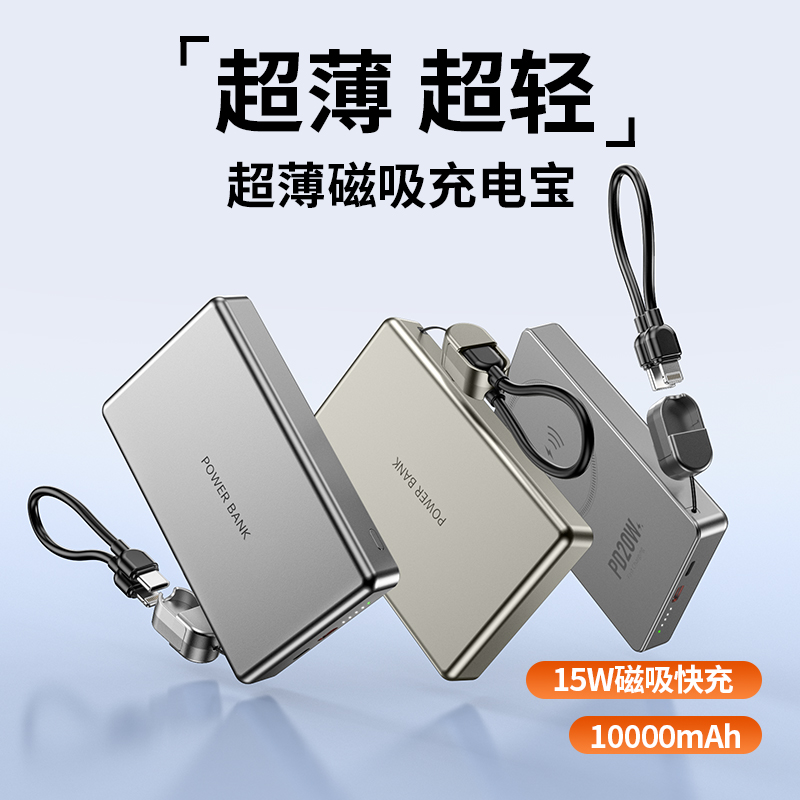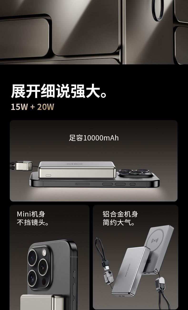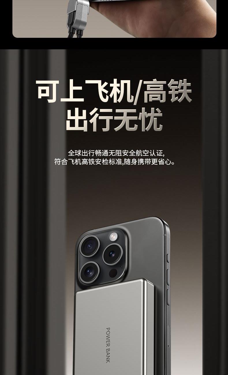 • 奥苏米3C认证超薄商务铝合金磁吸带线充电宝