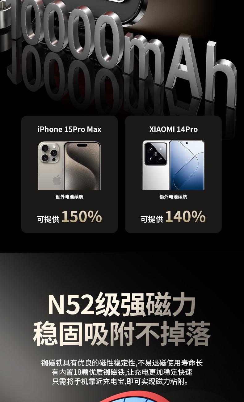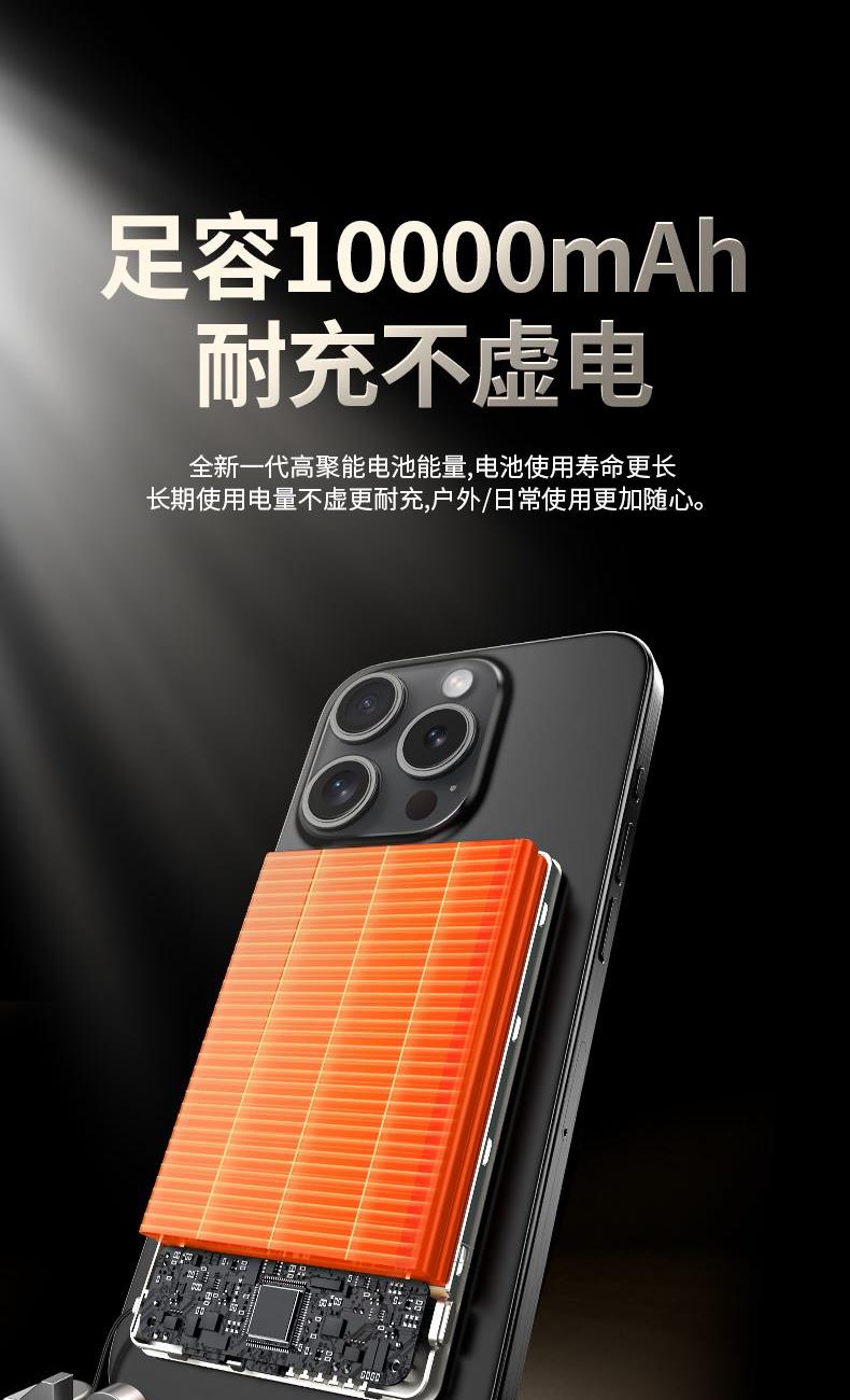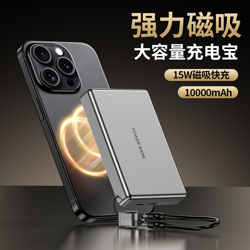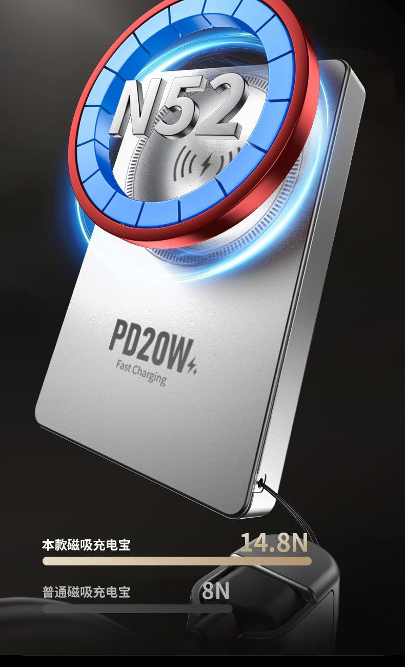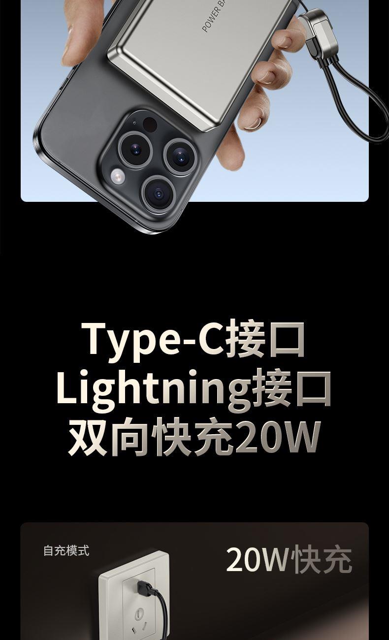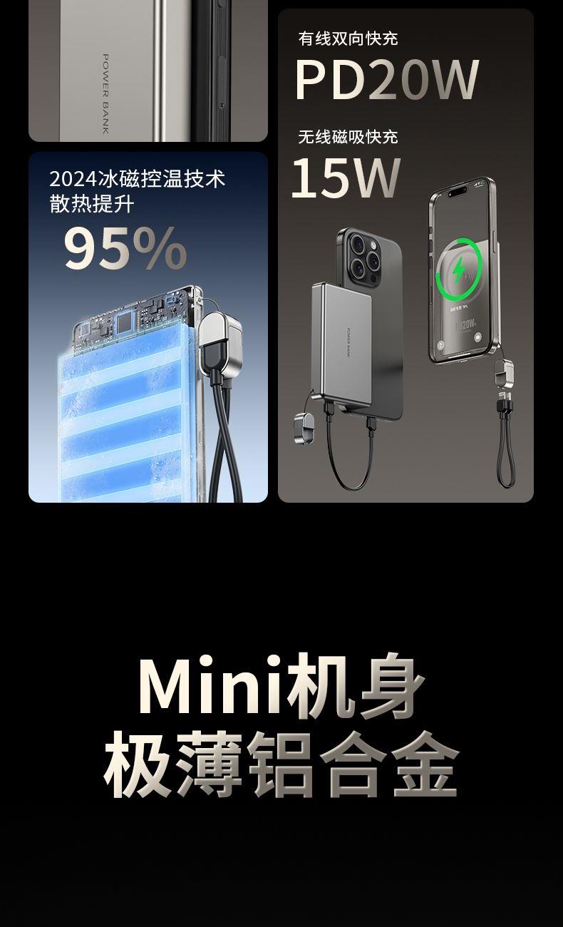 • 奥苏米3C认证超薄商务铝合金磁吸带线充电宝