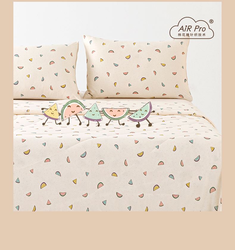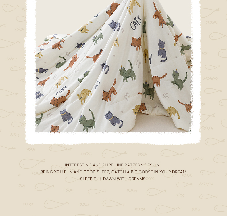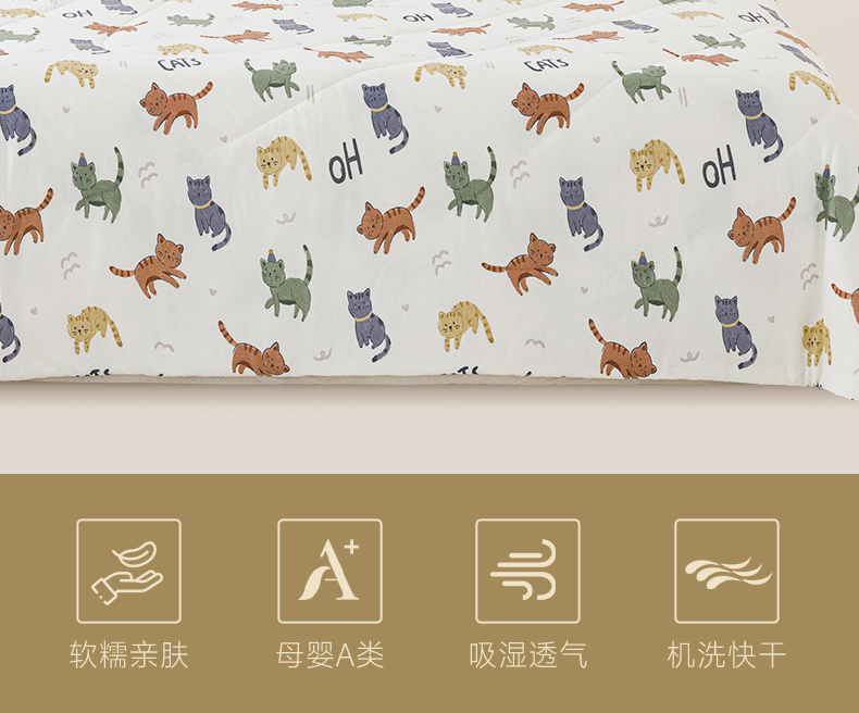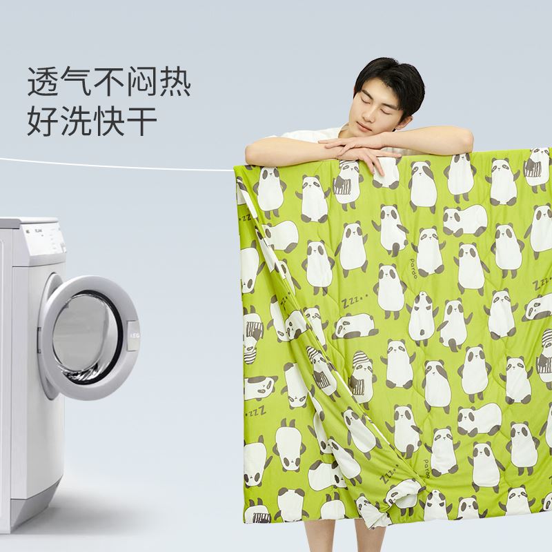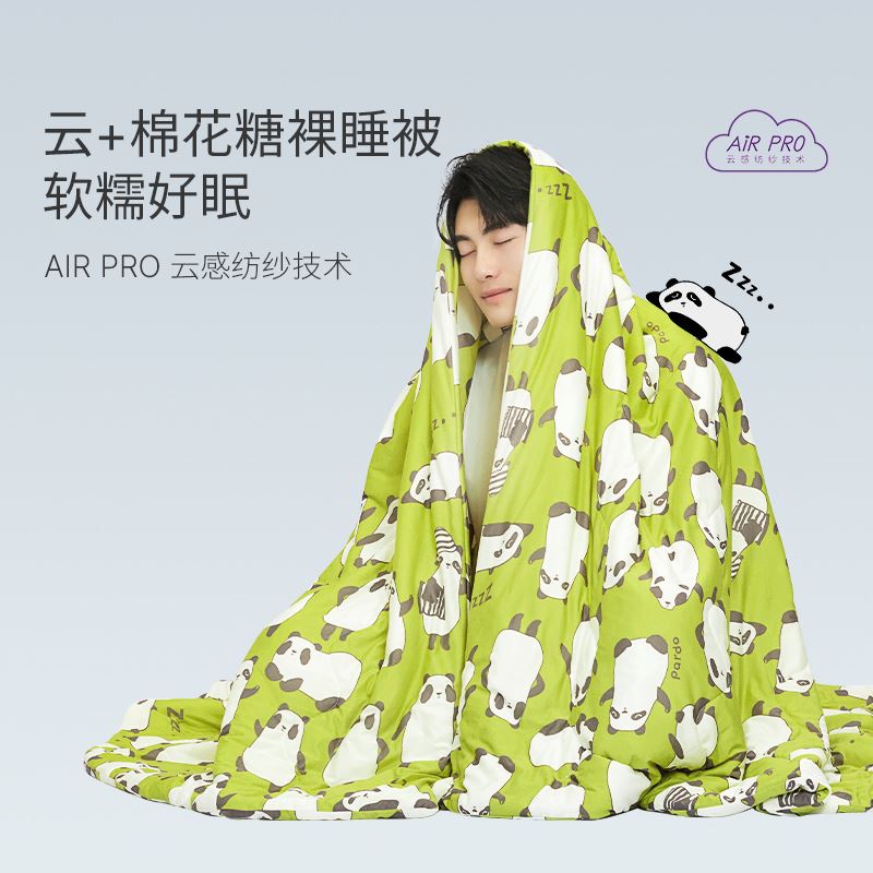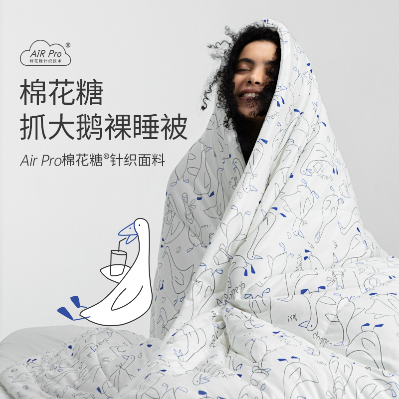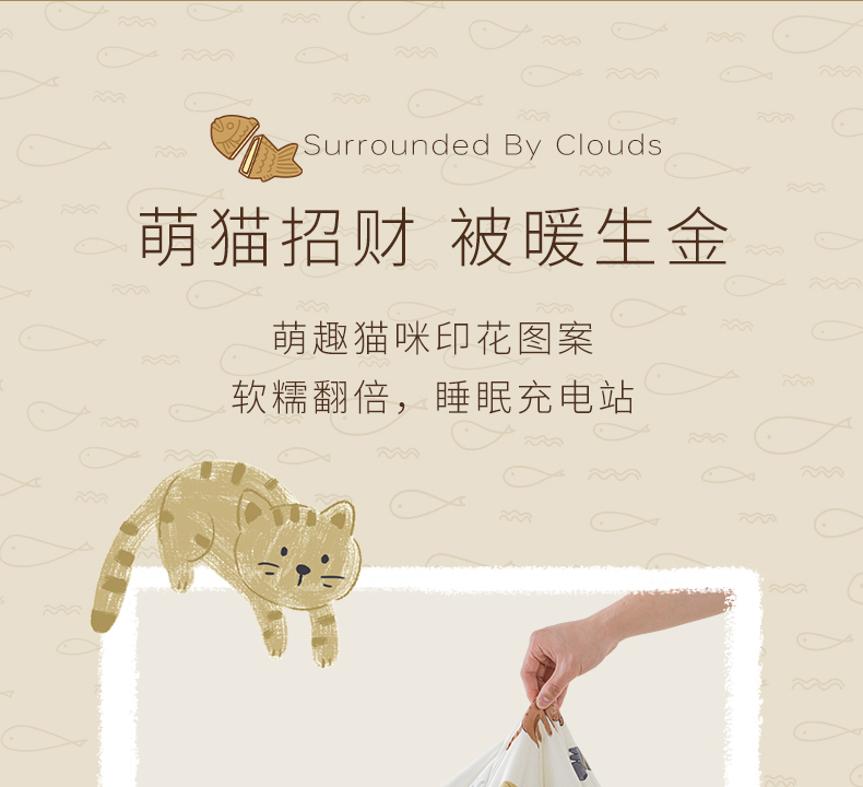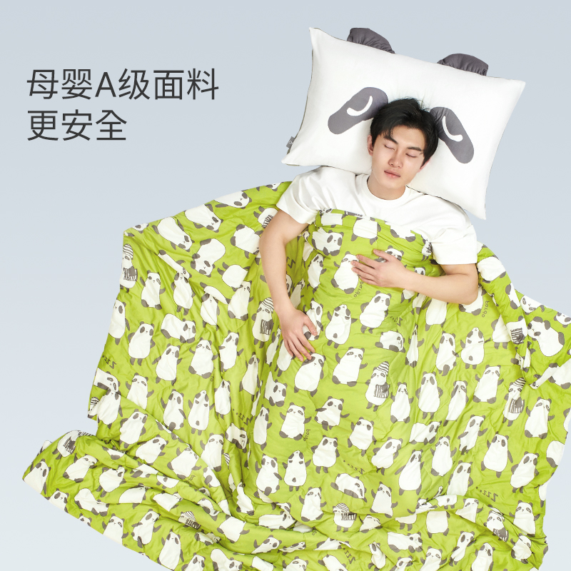 面料:95%聚酯纤维(云倍尔™科技纤维)+5%氨纶 规格:150*200cm 填充:聚酯纤维 填充重量:300g 花色:幸福耙耳朵-绿/白、抓大鹅、招财猫、瓜瓜 软,特别软,就是软FUFU~开启云感睡眠新享受,给足睡 眠安全感。采用艾美家云感纺纱科技针织织造; A类母婴级,0甲醛,0致癌芳香胺,0荧光剂,宝宝用好,你用也好。