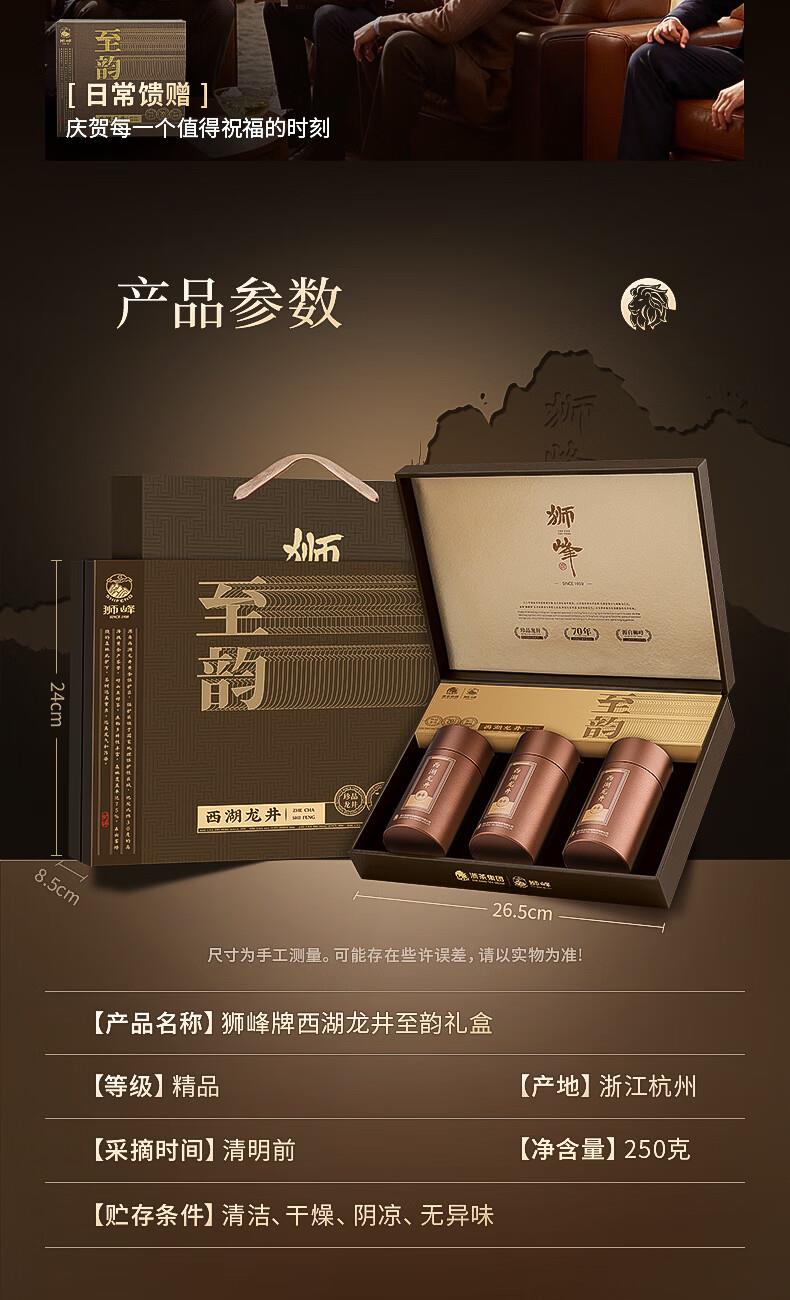 狮峰牌西湖龙井礼盒狮龙吟至韵250g
