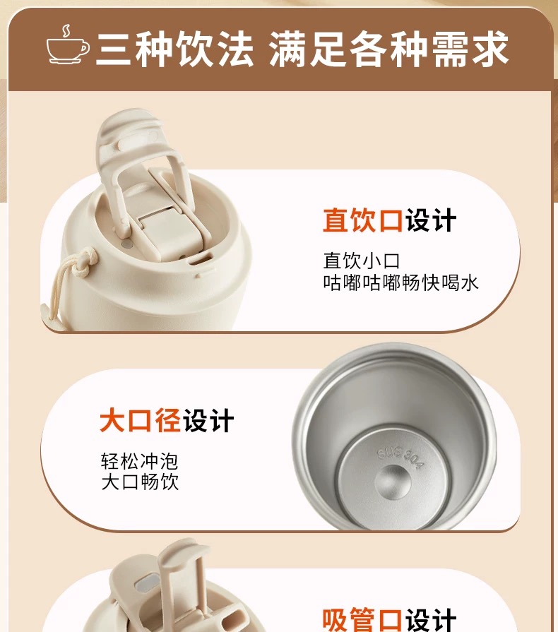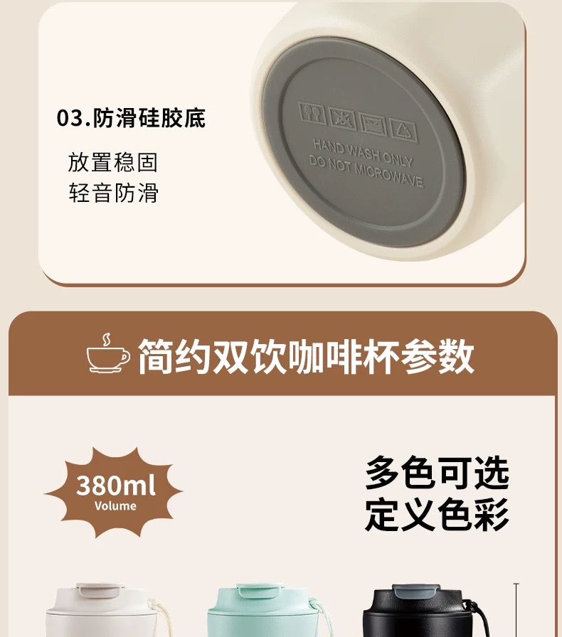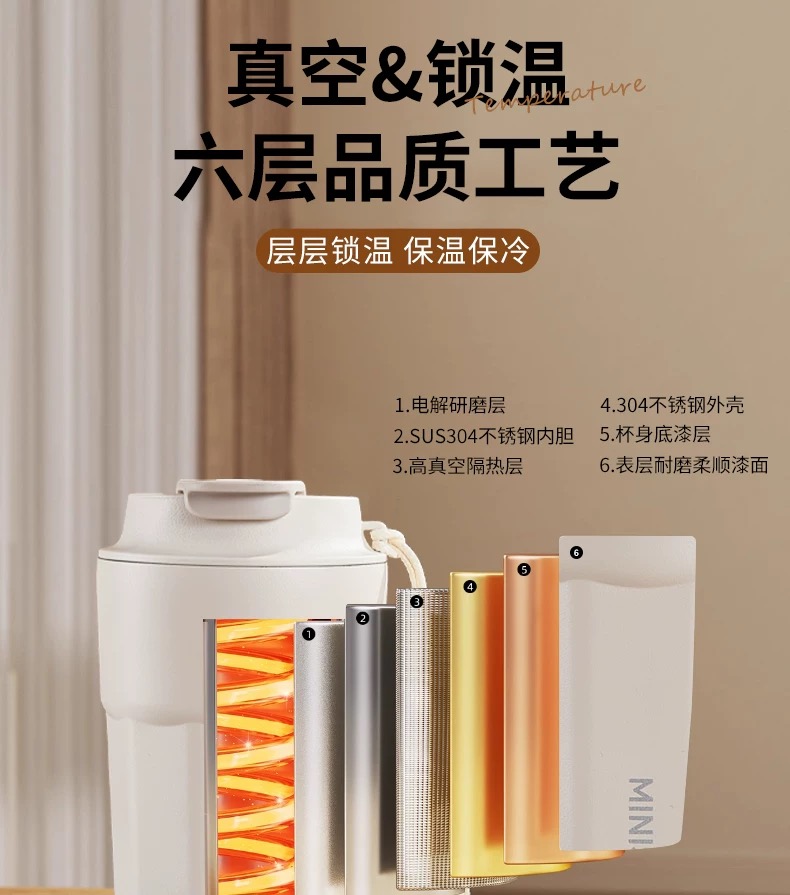 杯身主体材质:304不锈钢 杯盖材质:pp 内胆材质:304不锈钢 颜色:白、黑、绿(绿色暂缺) 包装:彩盒