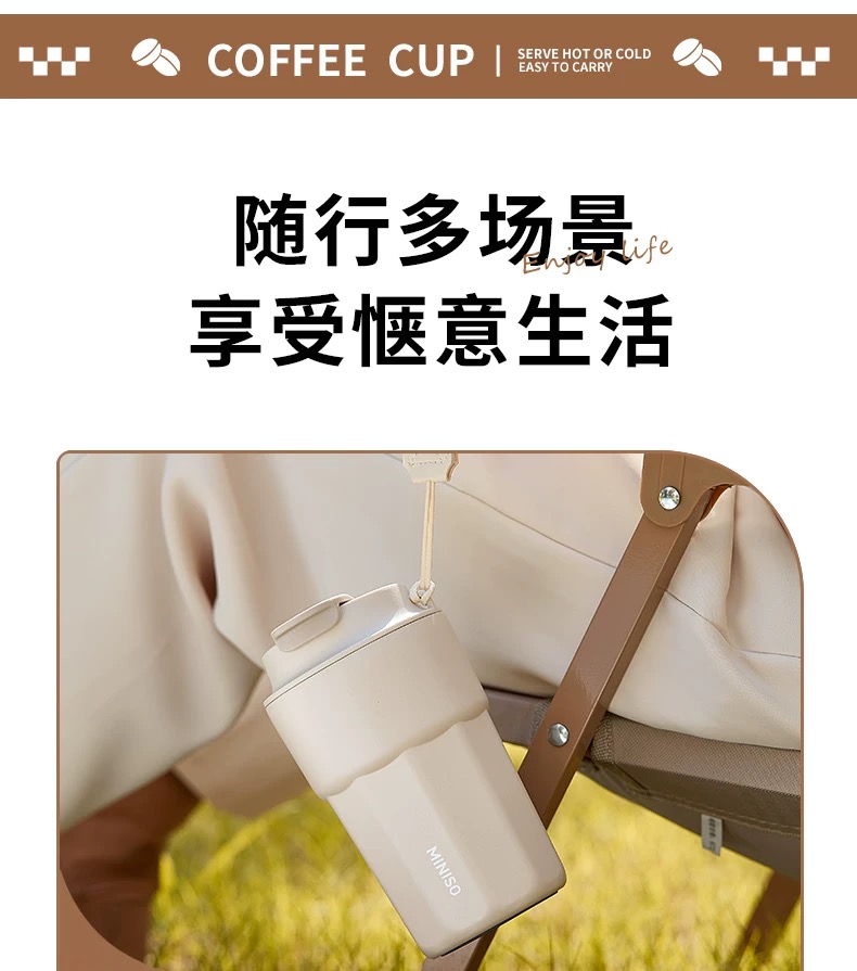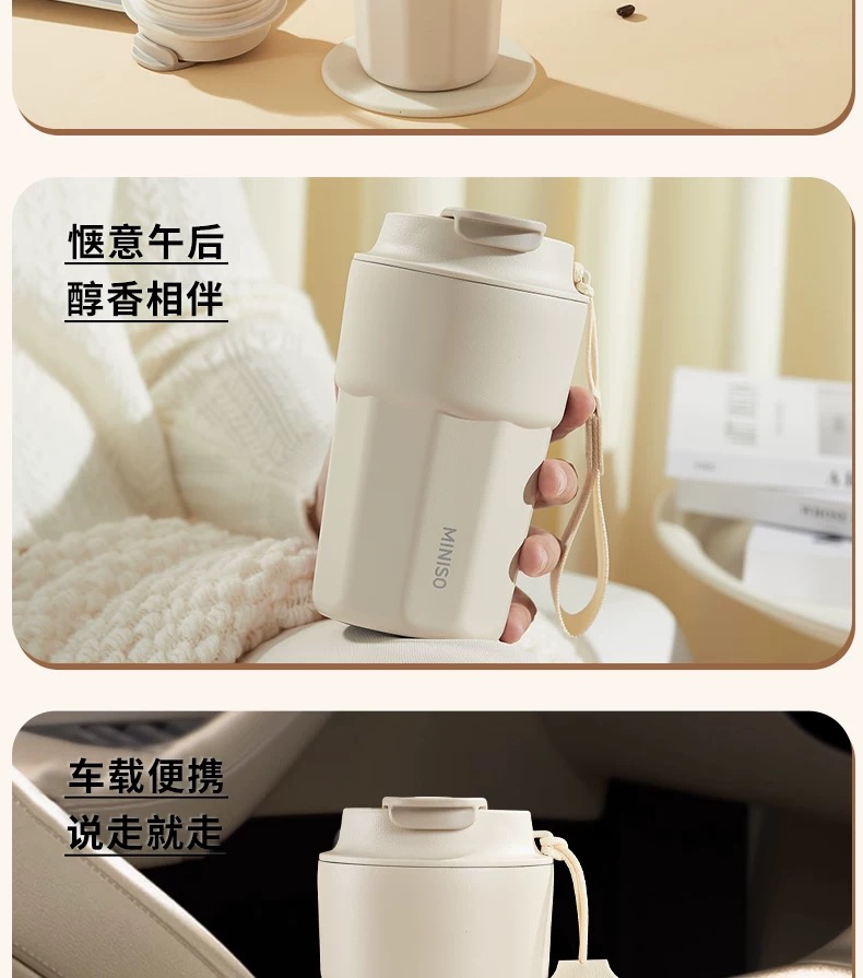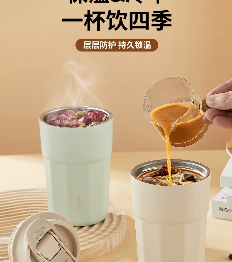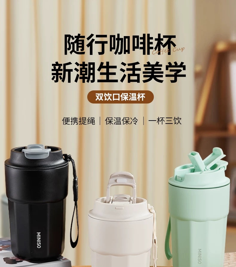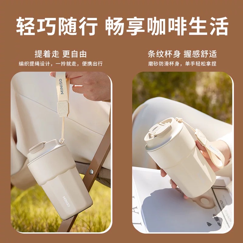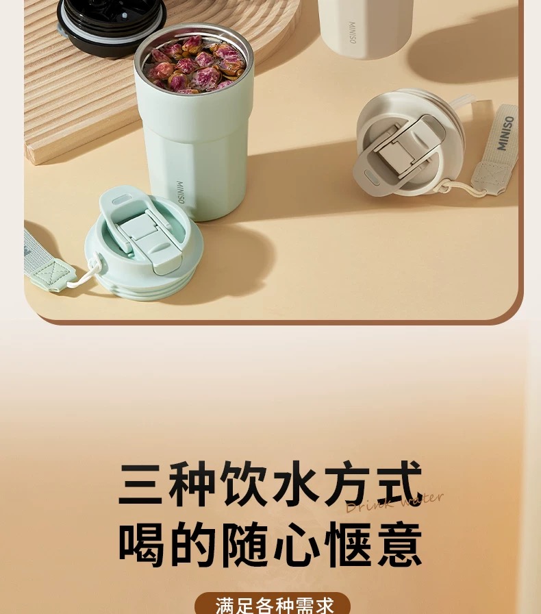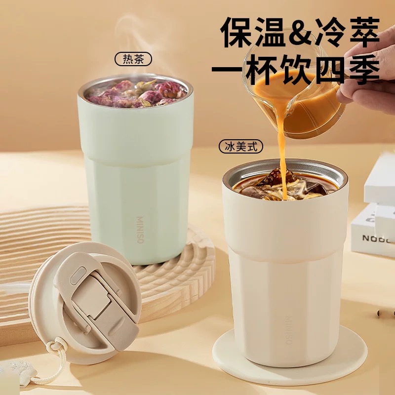名创优品(MINISO)不锈钢双饮保温杯咖啡杯380ML