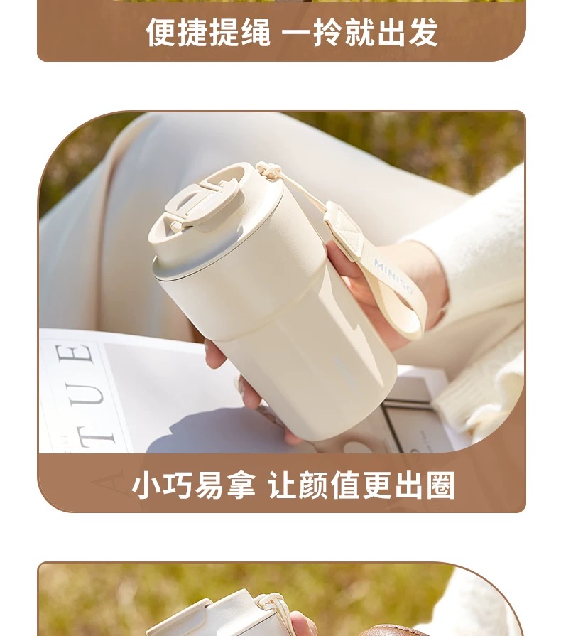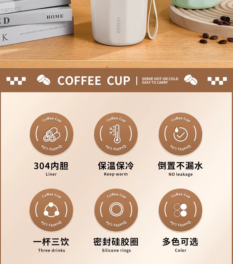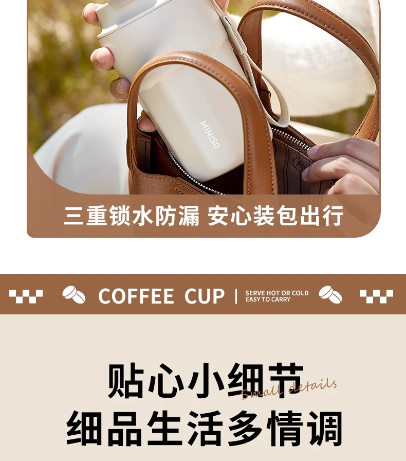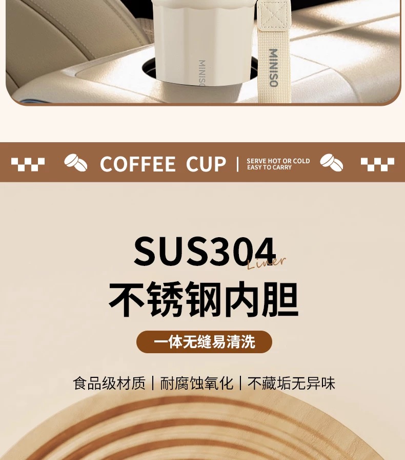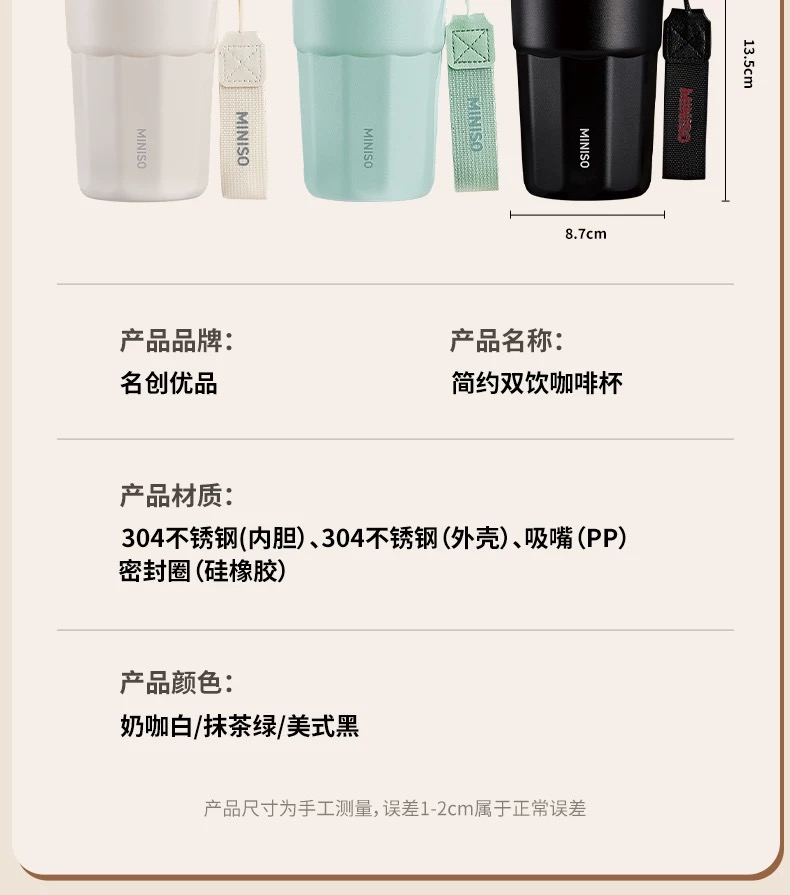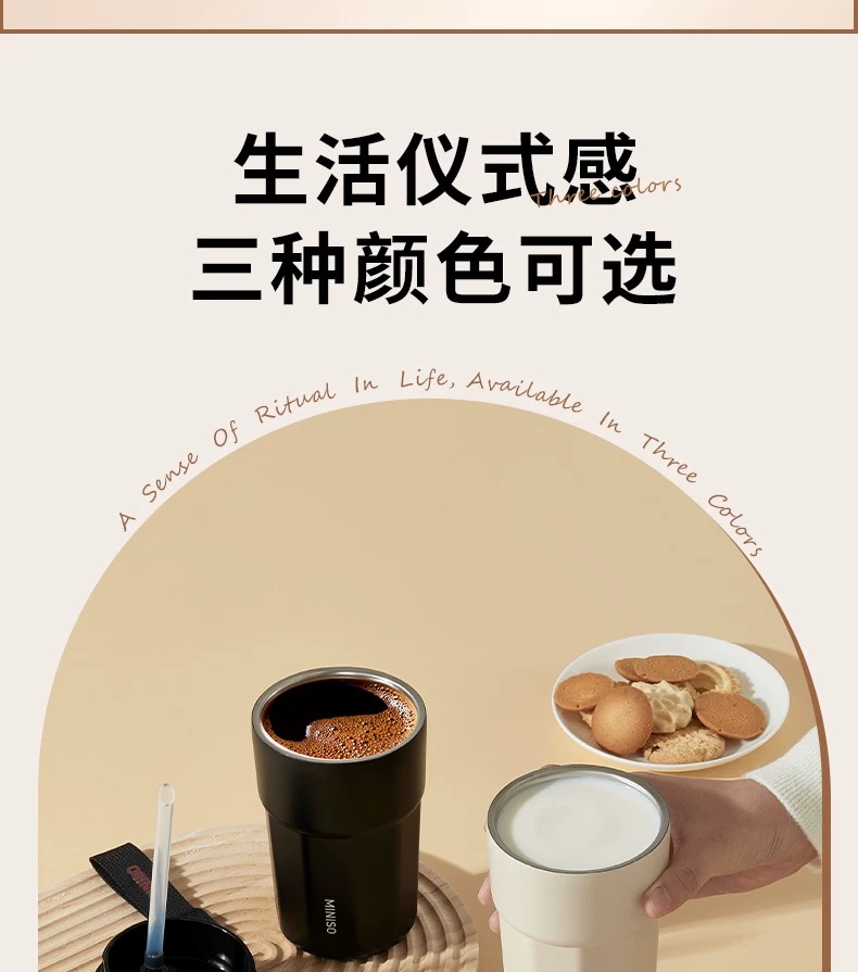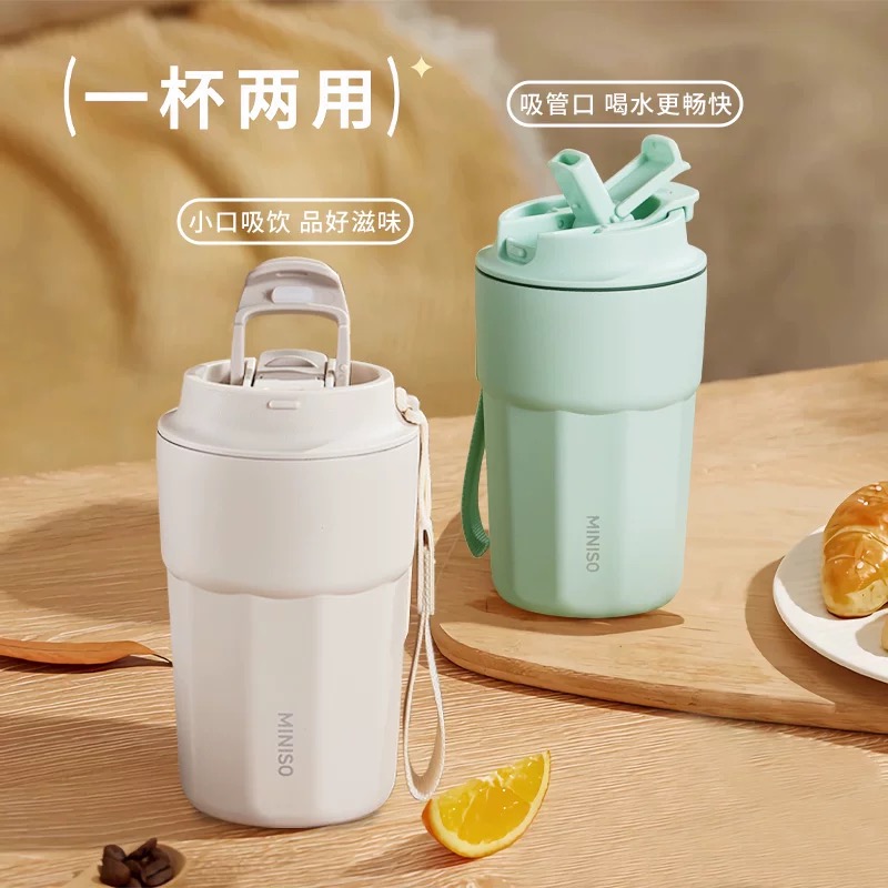 名创优品(MINISO)不锈钢双饮保温杯咖啡杯380ML