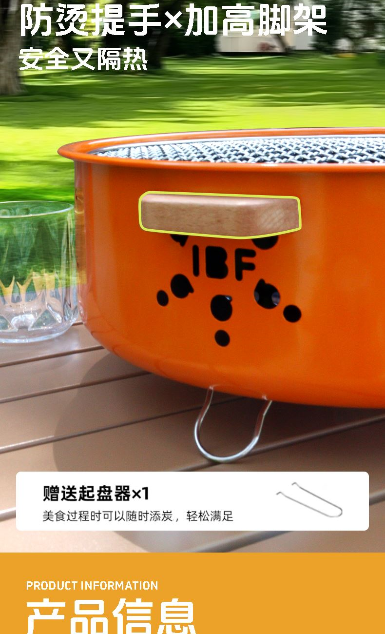 实木手柄小心机,防烫+高颜值两手抓!单手就能拎着走,移动烤摊营业啦!