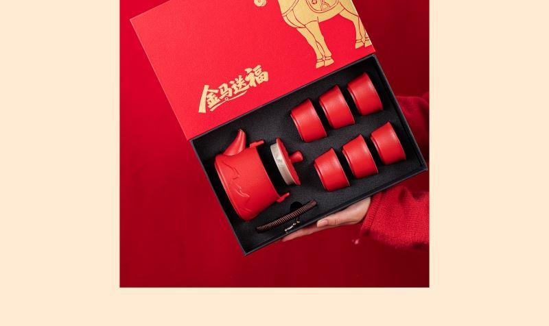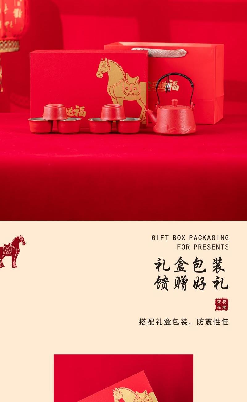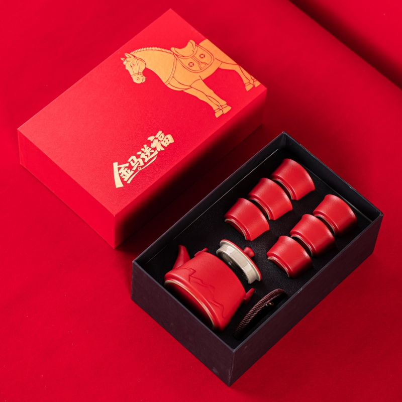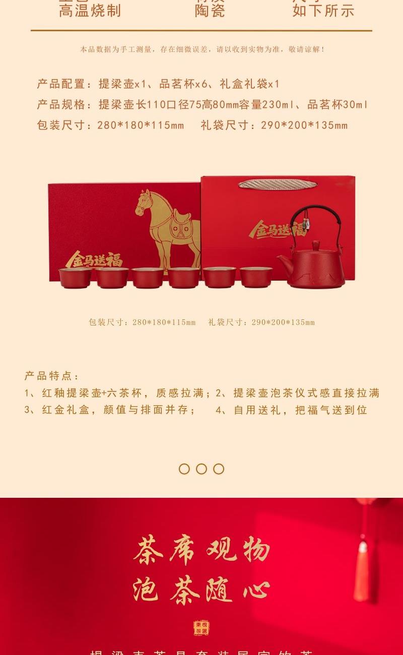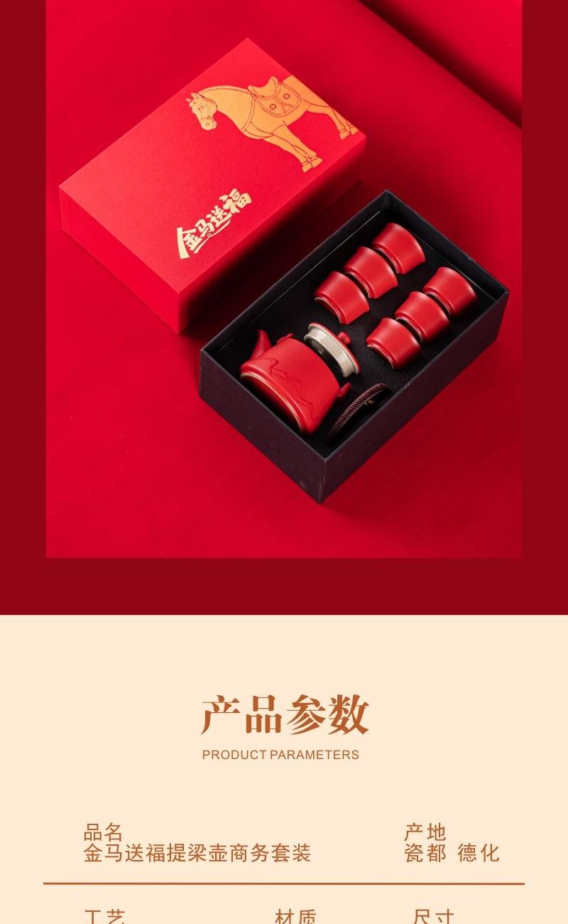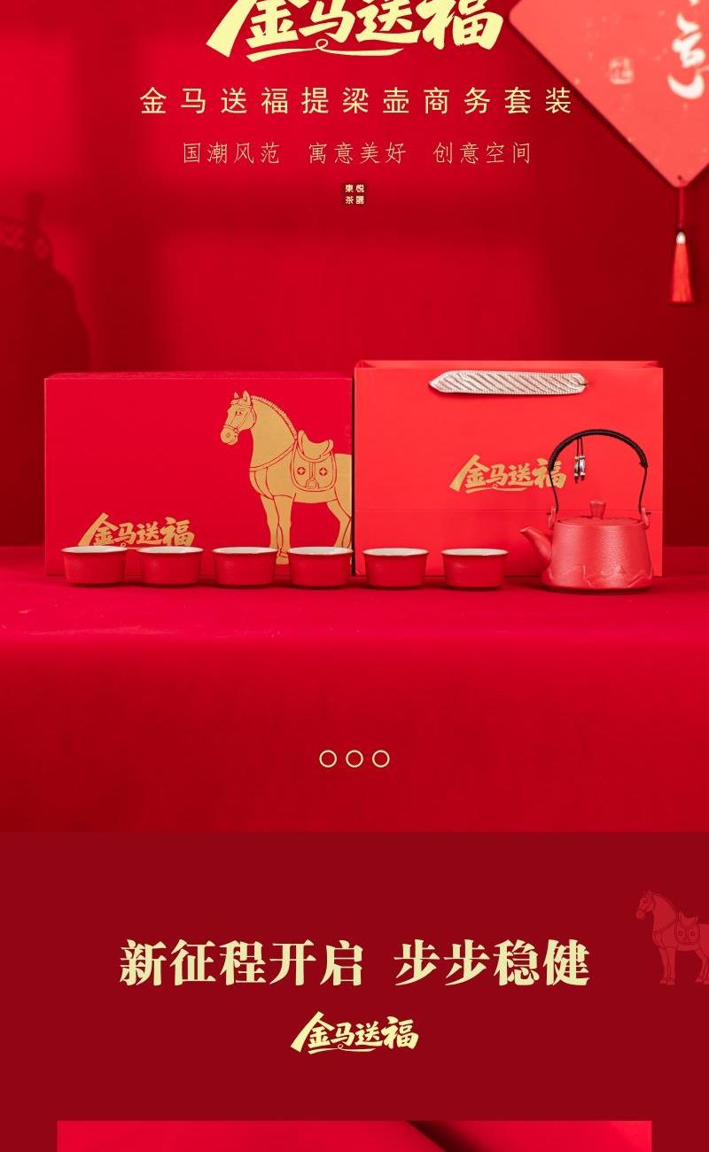 开门红年会茶具礼品金马送福提梁壶商务套装
