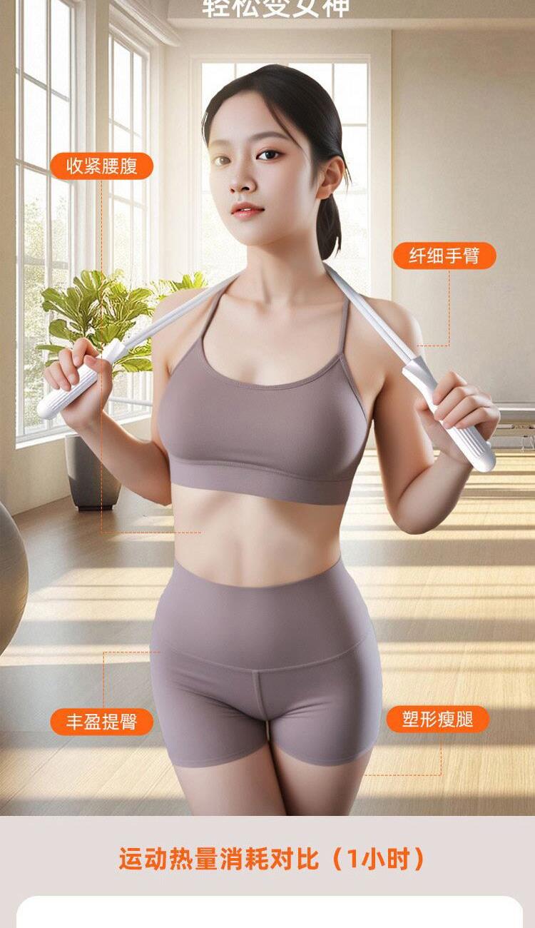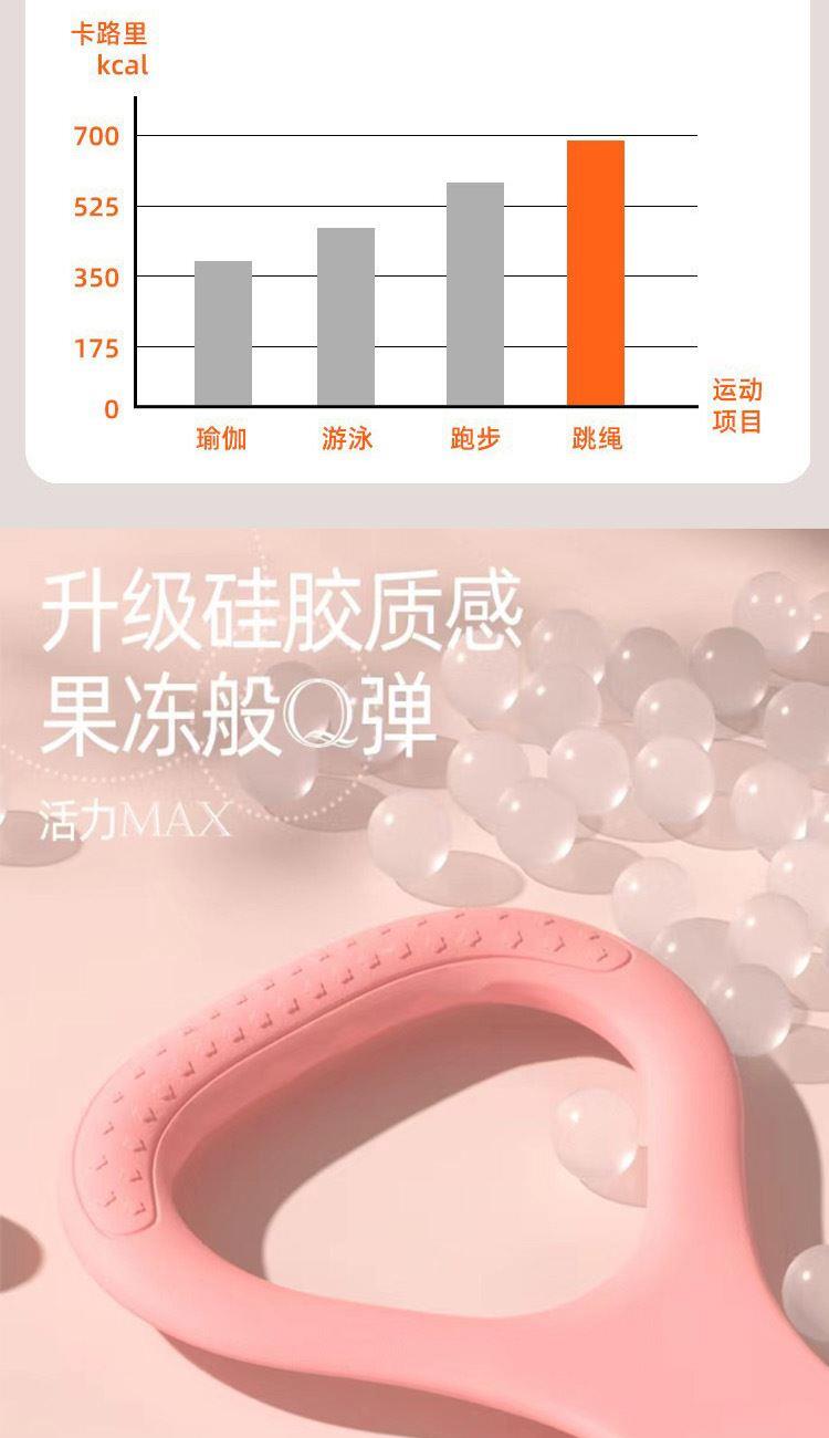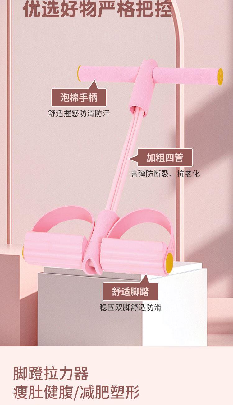 产品配置: 长绳跳绳* 1、足蹬拉力器* 1、拉力带*1、精美礼盒*1 产品规格: 1、跳绳 WL-TS01 手柄:直径27.5mm,长145mm,材质PP+TPE套 长绳:钢丝绳4.5mm±0.2mm,长度2.8m 2、足蹬拉力器 材质:pp+tpe+nbr 颜色:粉色 3、拉力带 材质:TPE+PP 颜色:粉色 产品特点: 1、跳绳加粗钢丝绳体,稳定不漂移,内置调节卡扣,可方便调节绳体长度; 2、多功能脚蹬拉力器,针对性全身锻炼,打造S型曲线;3、4根加粗乳胶管,拉力倍增回弹好,随意拉出恢复如初;4、开肩美背多功能拉力器,高强拉绳,不惧断裂;