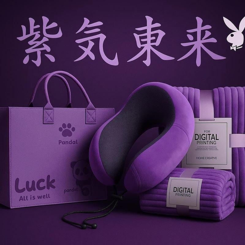 花花公子-家纺-紫气东来U型枕+午睡毯休闲毯组合