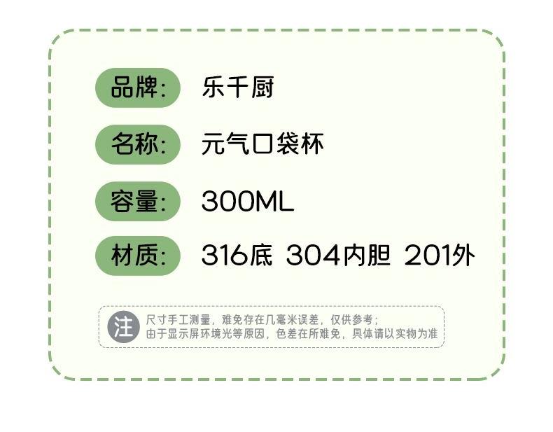 材 质:杯底SUS316 内胆SUS304 容 量:300ml 彩盒尺寸:6*6*19 外箱尺寸:61*31*40 1. 304不锈钢真空胆身,锁温持久,寒冬热饮常暖; 2. 内胆经电解研磨工艺处理,光滑抗污,符合食品接触标准,清洁省心; 3. 极简杯身线条利落,造型简约不失设计感,轻量便携适配多场景;