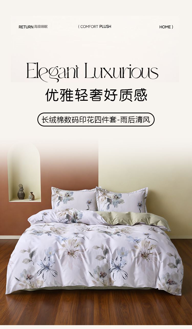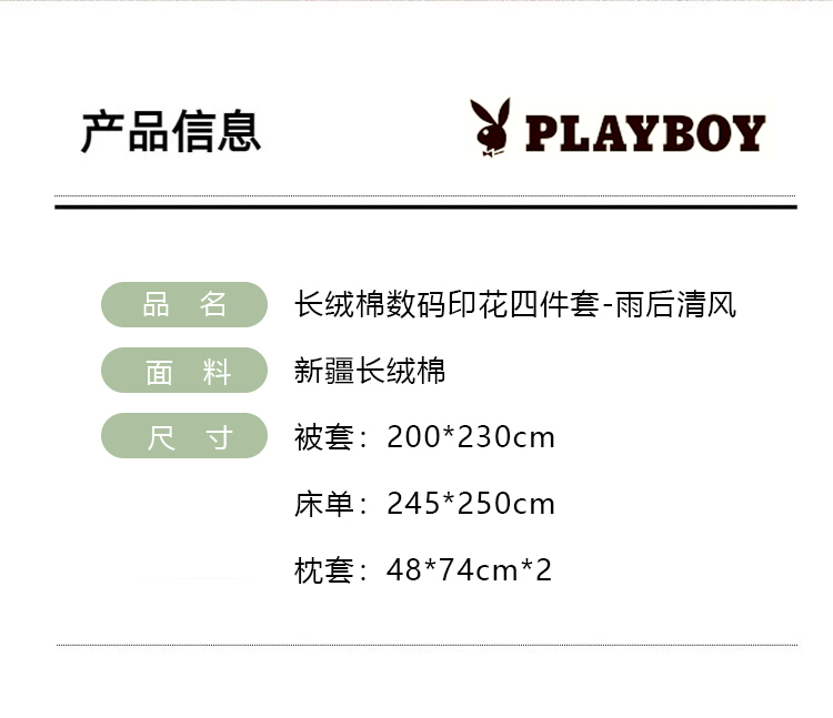 花花公子长绒棉数码印花四件套-雨后清风