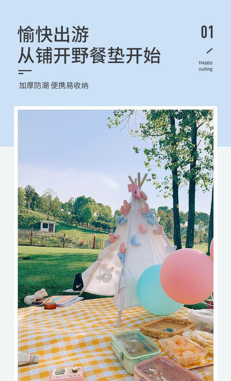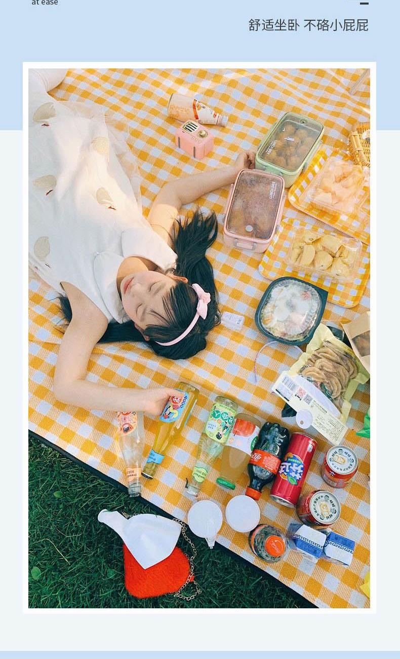 哲计一体式折叠收纳野餐垫YCD-0304A(黄色方格)