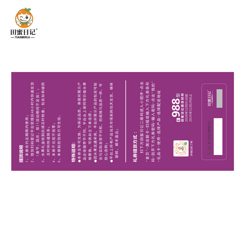 田蜜日记水果提供券988型