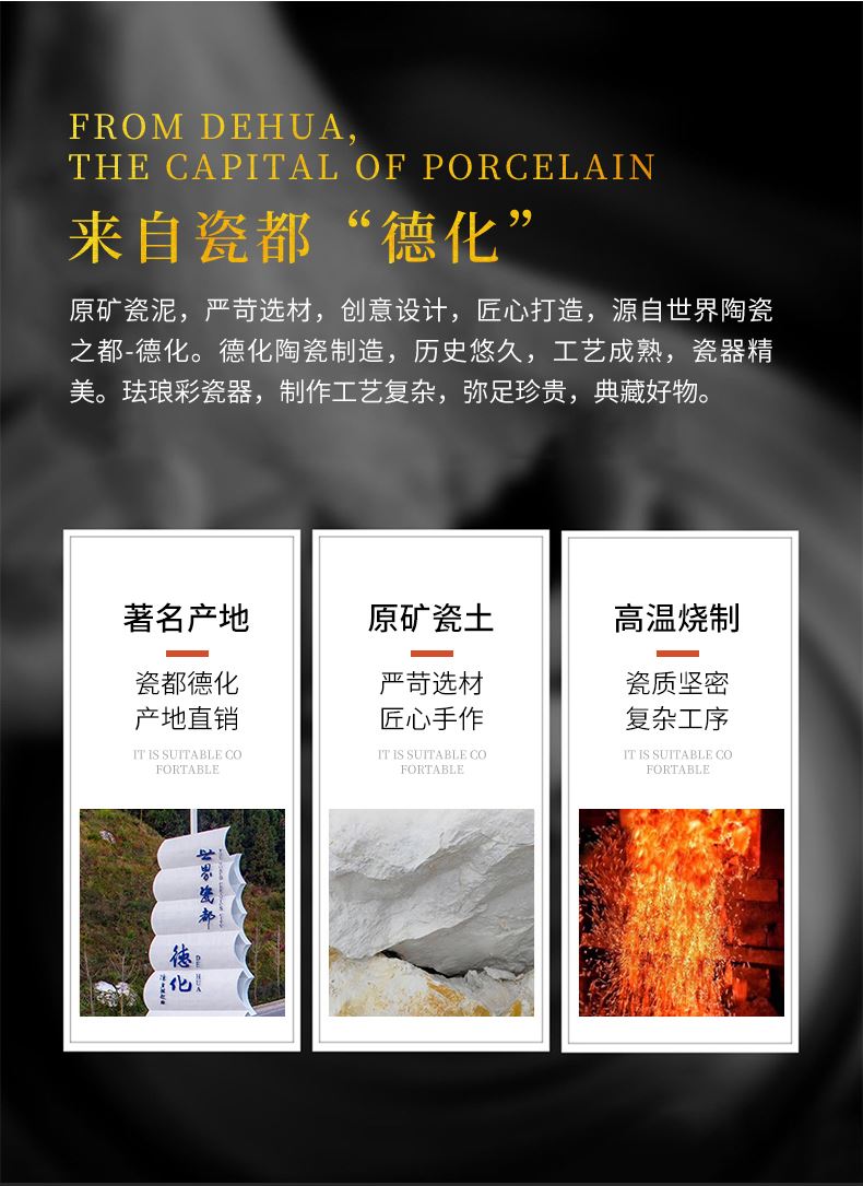 壶:10*9.5厘米252ml 品茗杯:6.5*3厘米50ml 天然矿物釉,高温烧制无铅镉 ,珐琅彩工艺,瓷质明亮通透,温润如玉,包装礼盒轻奢新颖,搭配礼盒包装,自用赠礼两宜,用陶瓷的温润,调和生活的棱角。