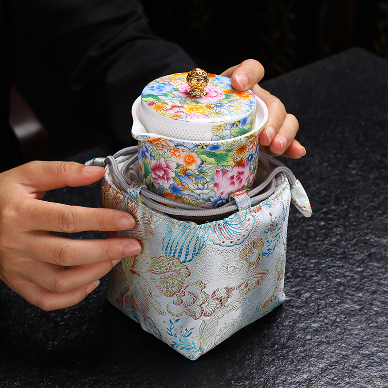 瓷语花香女神节万花珐琅彩旅行茶具套装