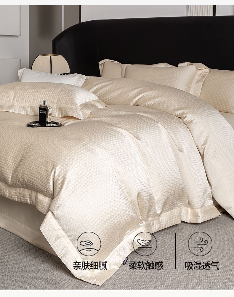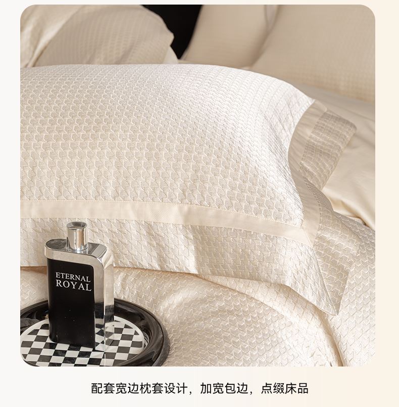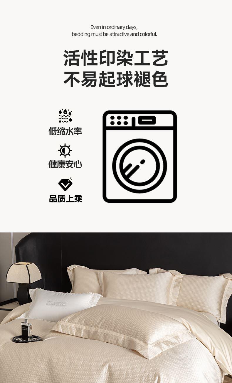被套:200*230cm 床单:240*250cm 枕套:48*74cm*2 面料:100支长绒棉 产品包装:精美礼盒 产品特点: 采用长绒棉棉高密活性印染,洗后不易脱色、不变形、不起球,依然如新。绿色无污染,手感细腻柔软,经纬额度均匀,面料厚实不起球,不缩水。
