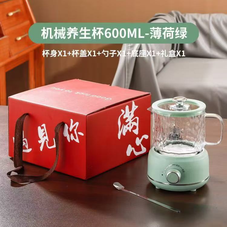 产品组成:整套=电陶炉+1杯+1盖+提手礼盒 产品材质:加热器+玻璃杯 产品功率:360W 彩盒尺寸:26.5*19.5*11.5CM 产品容量:600ML 外箱尺寸:57×42×51cm 颜色:中国红,薄荷绿,月光奶白,淡藤萝紫 产品特点: 煮炖粥、茶、汤等性能好,便于携带,是居家、旅行的好伴侣; 高品质,精美彩盒包装。有颜值兼具实用性,是送礼的佳选。