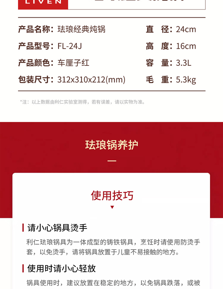 利仁3.5L珐琅锅FL-24J