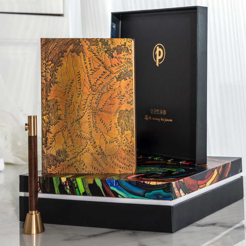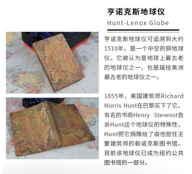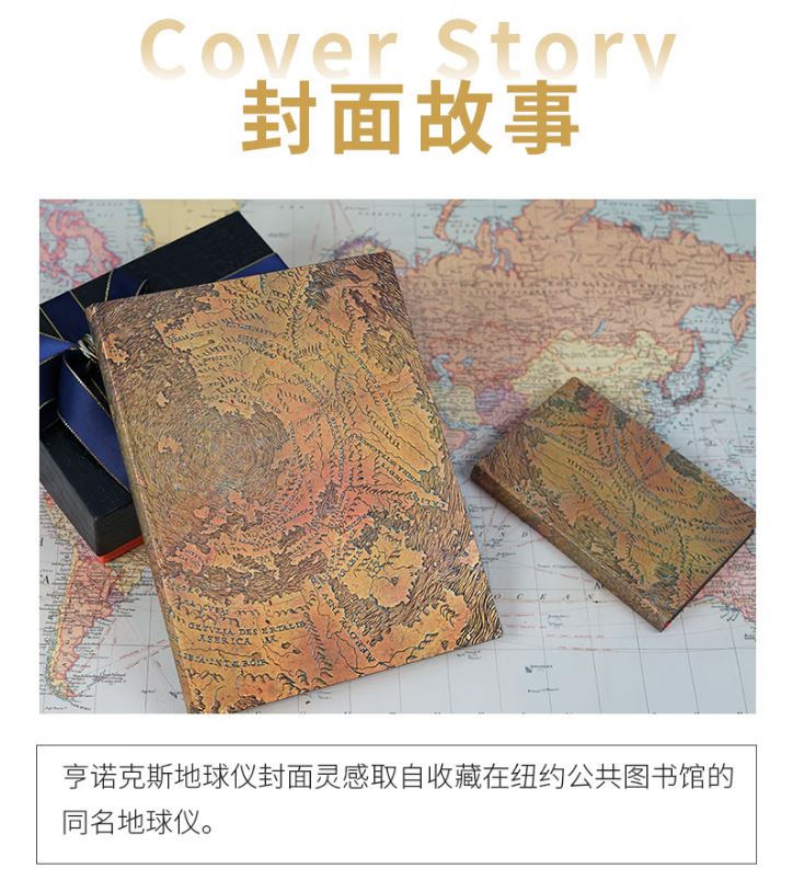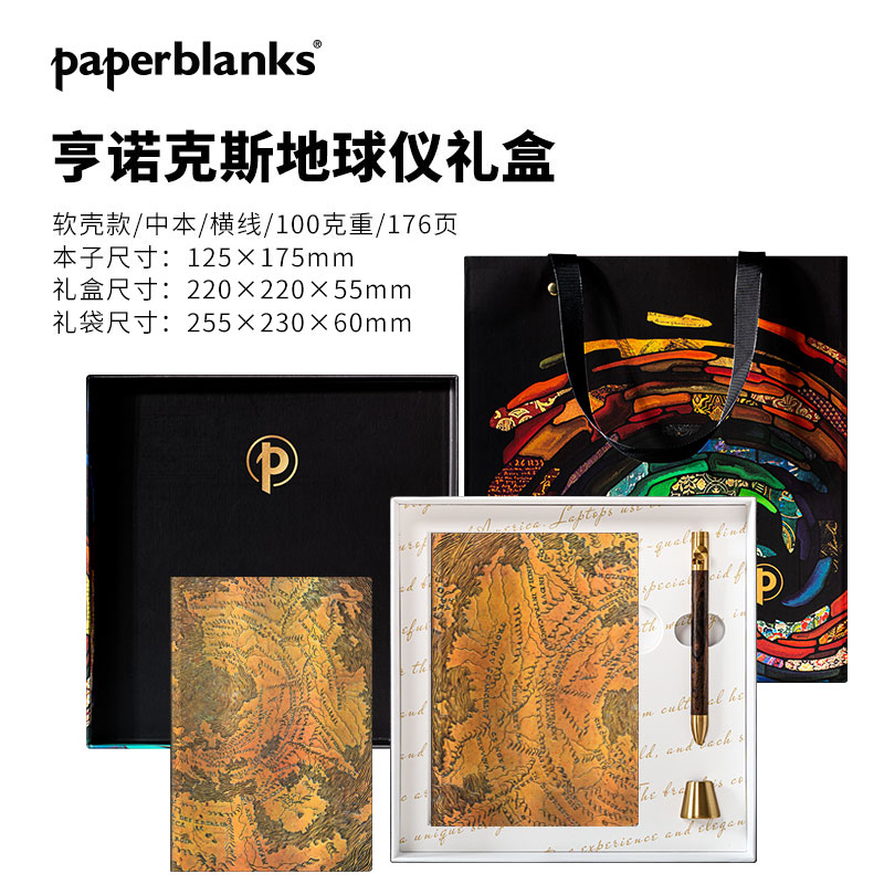 产品:绘梦灵感-亨诺克斯地球仪木杆水性笔笔记本礼盒套装 创作灵感:亨诺克斯地球仪封面灵感取自收藏在纽约公共图书馆的同名地球仪。 亨诺克斯地球仪可追溯到大约1510年,是一个中空的铜地球仪。它被认为是地球上古老的地球仪之一,也是描绘美洲古老的地球仪之一。 1855年,美国建筑师RichardMorris Hunt在巴黎买下了它。书商HenryStevenst告诉Hunt这个地球仪的特殊性,Hunt把它捐赠给了由他担任主要建筑师的勒诺克斯图书馆。目前该地球仪已成为纽约公共图书馆的一部分。 蜿蜒的山脉、广阔的海洋,在细腻的纹路间清晰可见。抚摸间,就能感受地球的浩瀚无穷。 礼盒组件:黑柿木水性笔1只、黄铜笔座1个、中本笔记本、天地盖礼盒、彩色礼袋 礼盒尺寸:220*220*55mm 礼袋尺寸:255*230*60mm 本子尺寸:130*180mm 本子页数:144页 纸张材质:120克重无酸纸