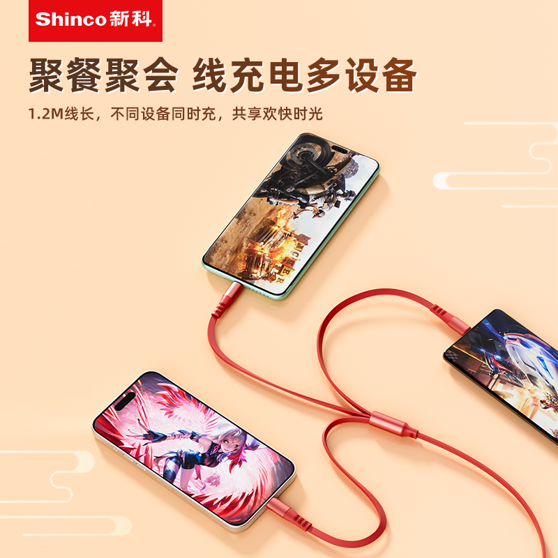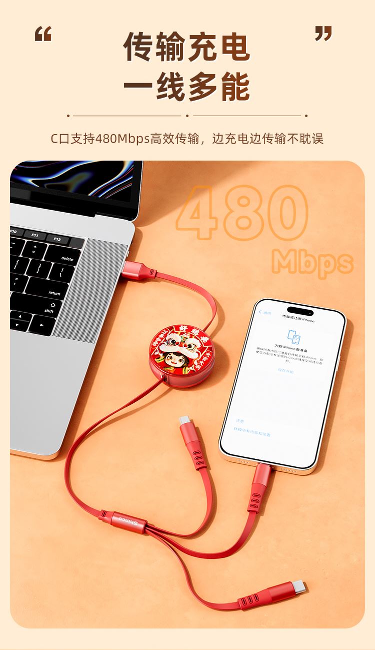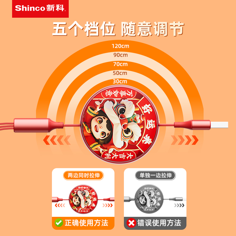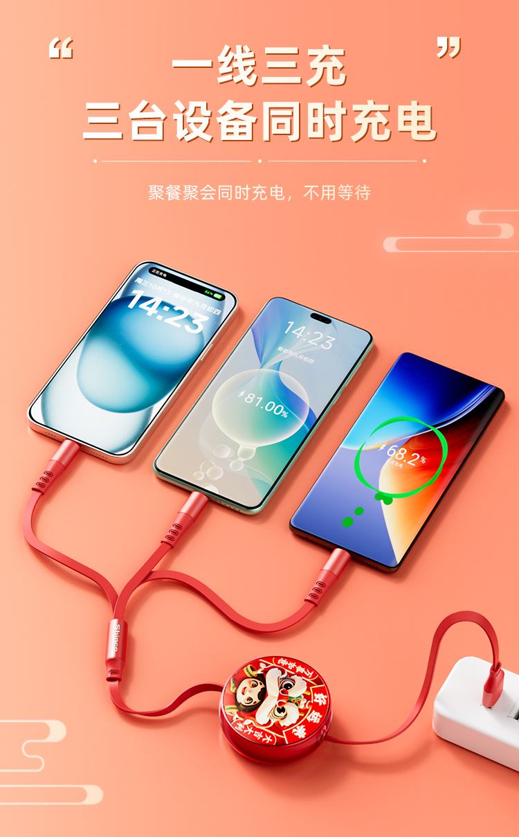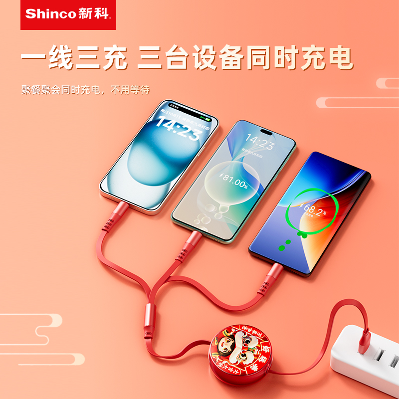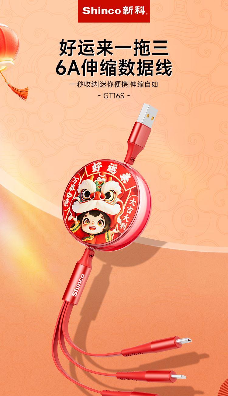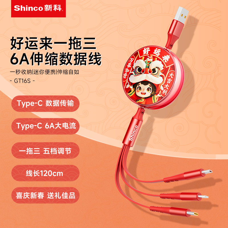 • 新科6A一拖三伸缩数据线(好运来)GT16S